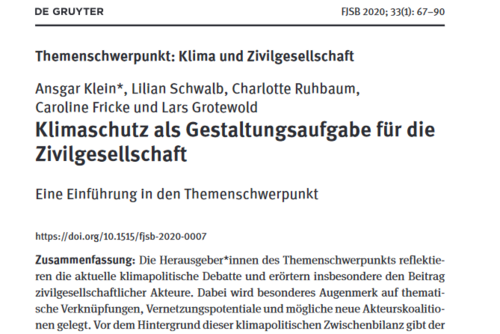 Der Klimawandel und die Folgen der Klimakrise sind eine der größten Herausforderungen der Menschheit. In der gesamten Zivilgesellschaft braucht es daher ein Bewusstsein für die Dringlichkeit des Themas sowie die Notwendigkeit der Verknüpfung zu anderen Engagementfeldern. Es braucht eine starke, kritsiche und aufmerksame Zivilgesellschaft für das Klima und die Begleitung der tiefgreifenden Transformationsprozesse.