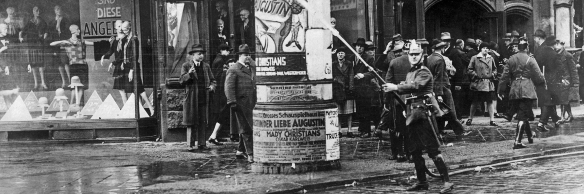 • Stürmung des Leipziger Gewerkschaftshauses durch Nationalsozialisten. Bücher und Dokumente werden vernichtet und aus den Fesntern geworfen.