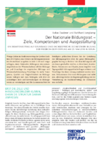 Publikation News Bildungspolitik | Schulpolitik Der Nationale Bildungsrat - Ziele, Kompetenzen und Ausgestaltung Der Nationale Bildungsrat - Ziele, Kompetenzen und Ausgestaltung Daubner, Lukas ; Jungkamp, Burkhard Zur Publikation Ein Debattenbeitrag zur Einführung eines Nationalen Bildungsrats Im Koalitionsvertrag wurde festgelegt, dass ein Nationaler Bildungsrat eingesetzt werden soll, um mehr „Transparenz, Qualität und Vergleichbarkeit im Bildungswesen“ zu erreichen. Die aktuelle Debatte kreist vor allem um die Ausgestaltung des Bildungsrats - dabei sollten erst die Ziele und Handlungsfelder geklärt, dann die Struktur daran angepasst werden. Welche Ziele kann ein Bildungsrat erreichen? Inwieweit sind die Strukturen des Wissenschaftsrats übertragbar? Wie lassen sich Transparenz und Unabhängigkeit erreichen? Auf Grundlage eines Fachgesprächs des Netzwerk Bildung liefern Lukas Daubner und Burkhard Jungkamp einen Beitrag zur Debatte.