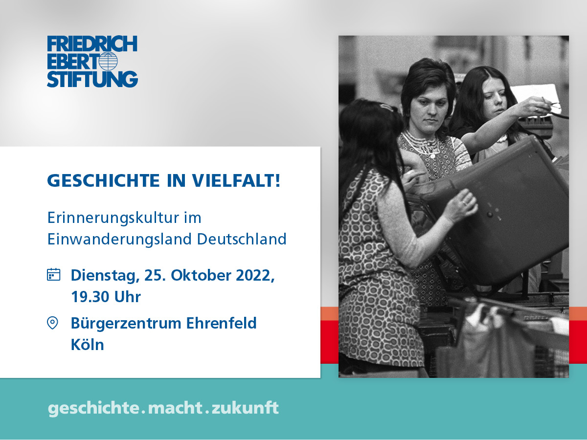 Geschichte in Vielfalt! Erinnerungskultur im Einwanderungsland Deutschland Migration ist eine globale, europäische und deutsche Realität. Für eine Einwanderungsgesellschaft, die niemanden ausschließt, demokratische Teilhabe sichert und ein friedliches Zusammenleben in Vielfalt garantiert, ist es von zentraler Bedeutung, Migration als Teil der eigenen Geschichte zu begreifen und zu erinnern. Geschichten von Migrant_innen und ihren Nachkommen bleiben jedoch nach wie vor häufig unberücksichtigt oder in ihren Zugängen beschränkt. Umso wichtiger sind die aktuellen Bemühungen, der Migrationsgeschichte ihren festen Platz in der Erinnerungskultur zukommen zu lassen und die Perspektiven zu öffnen. Doch wie soll diese Geschichte erinnert und museal repräsentiert werden? Wie kann ein multipers - pektivisches Geschichtsbild entstehen? Worin liegen Chancen, Einwanderung in die Erinnerungskultur zu integrieren? Was bedeutet das für unsere Demokratie?
