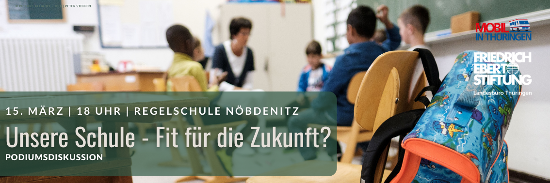 Der Schulbetrieb hat erheblich unter der COVID-19-Pandemie gelitten. Viele Probleme an den Schulen wurden aufgedeckt und manche verschärft. Manche Schülerinnen und Schüler wurden nur schlecht erreicht, Lernrückstände haben sich vergrößert. Nun wird viel über die Folgen für Kinder und Jugendliche diskutiert. Langfristig gibt es jedoch weitere Probleme, die dringend gelöst werden müssen. Der Lehrermangel ist in Deutschland und in Thüringen seit Jahren dramatisch. Besonders schwierig ist die Personalsituation an Thüringer Regelschulen. Der Nachwuchs bleibt überwiegend aus, wobei viele Lehrer_innen bereits ihrem Ruhestand entgegensehen. Das führt zu immer mehr Unterrichtsausfällen an den Schulen. Marode Turnhallen, kaputte Schultoiletten oder Fenster in Klassenräumen, die sich nicht öffnen lassen, sind ein Dauerthema und die digitale Ausstattung an Schulen lässt vielerorts zu wünschen übrig. Corona hat diesen Abwärtstrend noch beschleunigt. Die genannten Probleme bestehen allerdings nicht nur in Thüringen, sondern in vielen Teilen Deutschlands. Die "Bildungskrise“ trifft vor allem Kinder und Jugendliche aus ärmeren Familien und schafft eine gefährliche Ungerechtigkeit. Das ist nicht nur unfair - Deutschland kann es sich auf die Dauer auch nicht leisten.Im Dialog mit Landrat Uwe Melzer, dem Bürgermeister der Stadt Schmölln Sven Schrade, Professor an der Universität Jena Prof. Dr. Roland Merten, der Schulleiterin Bettina Groß und der Schülervertretung der RS Nöbdenitz möchten wir über genau diese Probleme sprechen.Durch die Veranstaltung führt Christian Müller, Reporter beim MDR Thüringen.Wir laden Sie herzlich ein, am 15. März ab 18.00 Uhr, in der Regelschule in Nöbdenitz, mit uns und unseren Gästen zur Situation der Regelschule Nöbdenitz und zur Zukunft der Schulen in Thüringen ins Gespräch zu kommen..