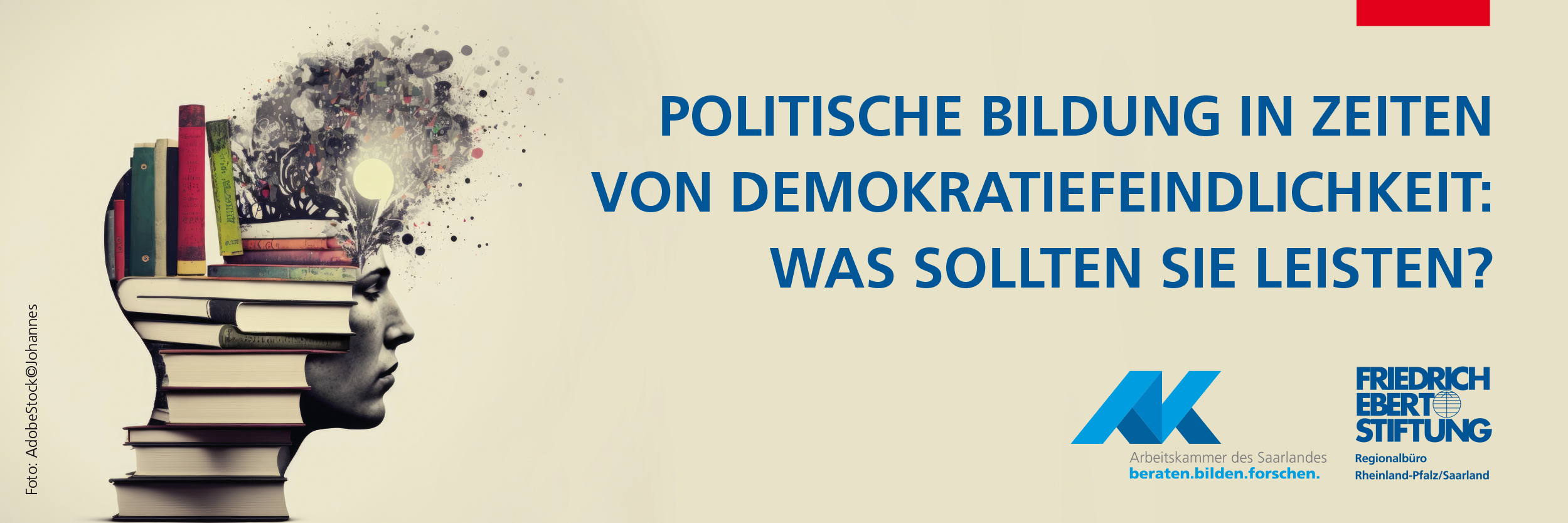 Die Sorge um die Demokratie ist aktuell in aller Munde. Der Ruf nach mehr politischer Bildung und einer Demokratisierung aller Lebensbereiche wird immer lauter. Die Novellierung des Saarländischen Bildungs und Freistellungsgesetzes (SBFG) eröffnet Arbeitnehmer_innen die Möglichkeit für fachspezifische und politische Bildungsmaßnahmen. Lebenslanges Lernen soll mithilfe von Bildungsfreistellung erleichtert werden.Wie kann man die demokratische Resilienz fördern, um antidemokratischen und rechtsextremen Einflüssen entgegenzuwirken? Wie muss politische Bildung heutzutage aussehen? Über die Notwendigkeit und die generelle Bedeutung politischer Bildung wollen wir mit Vertreter_innen aus Wissenschaft, Politik, Gewerkschaften und Weiterbildung diskutieren. Sie sind herzlich eingeladen! Mit: Prof. Dr. Sabine Achour, Freie Universität Berlin, Professorin für Politische Bildung und Politikdidaktik am Otto-Suhr-Institut; u.a. Mitautorin der FES-Studie „Die distanzierte Mitte – Rechtsextreme und demokratiegefährdende Einstellungen in Deutschland 2022/23 Dr. Anna-Sophie Heinze, Universität Trier, u.a. Leiterin des Projekts „Resilienz unter Jugendlichen fördern, um dem rechtsextremen Einfluss bei den Wahlen in Ostdeutschland 2024 entgegenzuwirken“ Jessica Heide, Staatssekretärin für Bildung und Kultur im Ministerium für Bildung und Kultur des SaarlandesSimone Bubel, DGB-Regionsgeschäftsführerin Saar-TrierJörn Didas, Geschäftsführer des Adolf-Bender-ZentrumsModeration: Dörte Grabbert, Pressesprecherin der Arbeitskammer des SaarlandesIn Kooperation mit der Arbeitskammer des Saarlandes.