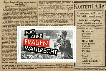 Eine Briefmarke zu 100 Jahre Frauenwahlrecht. Der „Vorwärts“ von 1919 enthüllt die Geschichte eines Fotos.