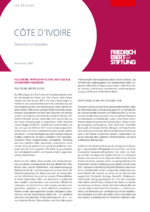 La Friedrich-Ebert-Stiftung (FES) est active en Côte d'Ivoire depuis 1990 et offre un espace de dialogue politique entre les différents camps. Avec son programme Génération à Venir, la FES encourage les jeunes engagés à aborder les questions sociopolitiques. Parmi les autres points forts du travail de projet figurent des formats de dialogue sur les relations entre la société civile et les acteurs du secteur de la sécurité ainsi que le soutien des forces progressistes dans les syndicats, la société civile et les partis (pour une plus grande participation politique des jeunes adultes et des femmes).