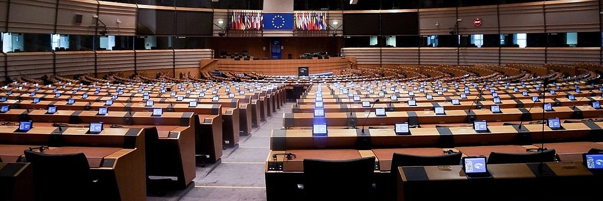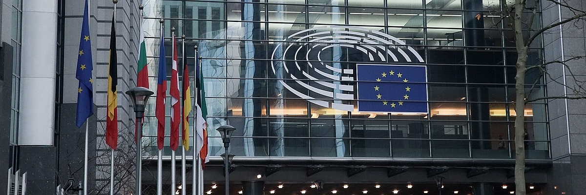 • Der Haupteingang des EU-Parlaments in Brüssel.