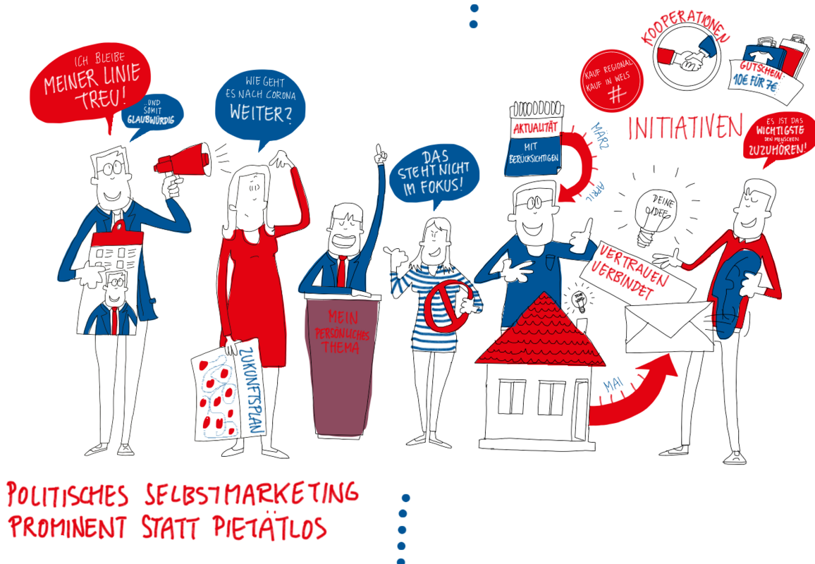 Rückblick Kommunalpolitik | Engagement Poetry Slam, Graphic Recording und Curry-Wurst: Ein Rückblick in Film und Bild auf die erste virtuelle kommunalpolitische Sommerakademie 28.07.2020 Alles war ein wenig anders als sich am 17. und 18. Juli 2020 Kommunalpolitiker_innen und ehrenamtlich Engagierte aus ganz Deutschland zur ersten virtuellen kommunalpolitischen Sommerakademie zusammenfanden. Kein Check-in im Tagungshaus, kein Smalltalk zum Warmwerden, kein Buffet. Stattdessen? Technik-Check und Live-Musik im Break-Out Raum, Poetry-Slam, Graphic Recording und Curry-Wurst! Bild: Urheber: Alexander Lehmann Dienstag, 07.04.2020 Rückblick Engagement Medien und Digitale Welt "Einen Moment bitte!" - Das war die #KOMK20 in Oberhausen! "Einen Moment bitte!" Länger hat man als Kommunalpolitiker_in oftmals nicht Zeit, um auf sich aufmerksam zu machen. Beim Scrollen über das Display gilt es, unter der Fülle von bunten Bildern und Videos hervorzustechen. Warum sollten Menschen gerade... Bild: Urheber: privat Montag, 18.05.2020 Blog Bildung Engagement Integrationspolitik Integration "Dem Integrationsrat fehlt eine starke Lobby" - Ein Interview mit Tayfun Keltek zur Wahl der Integrationsräte In ungefähr der Hälfte aller Bundesländer gibt es einen Ort, an dem sich Bürger_innen mit Zuwanderungsgeschichte kommunal engagieren: Die Integrations- oder Ausländerräte oder –beiräte. In Nordrhein-Westfalen ist Tayfun Keltek seit mehreren... Mittwoch, 20.05.2020 Digitale Formate (NICHT anklicken, bitte spez. Unterkategorie wählen) Digitalisierung Kommunalpolitik Klimawandel, Energie und Umwelt Kommunal - Regional - Digital: Vier Online-Diskussionen zu kommunalen Herausforderungen Die Welt ist im Wandel – nicht erst seit Beginn der Corona-Krise. Mobilitätswende, Klimawandel, Strukturwandel und Digitalisierung stellen vier der großen Herausforderungen für die Kommunen dar. Zu diesen Themen möchten wir uns mit Ihnen austauschen,... Graphic Recording vom Freitag, 17.07. (als pdf) Der Einladung der KommunalAkademien Baden-Württemberg, Bayern und NRW zur ersten rein virtuellen Sommerakademie folgten ca. 140 Teilnehmer_innen aus ganz Deutschland. Zwei Tage lang sollten die Herausforderungen der Covid-19-Pandemie auf kommunalpolitischer Ebene analysiert und besprochen werden. „Wo drückt der Schuh?“, so die offene Eingangsfrage am ersten Abend: Ob Digitalisierung, Schule oder die Frage nach den Konsequenzen für die kommunalen Haushalte – zahlreiche Themenfelder rückten ins Blickfeld. Die Pandemie als "Brennglas" bestehender Probleme Immer wieder hieß es, die Pandemie verstärke die Probleme, die bereits vorhanden seien: Sei es beispielsweise die schwierige Situation bildungsferner Kinder und Jugendlicher im Home Schooling, die Notlage manch ärmerer Familien durch plötzliche Arbeitslosigkeit, oder die Belastungsgrenzen unseres Pflege- und Gesundheitssystems und der dort Beschäftigten. Die Pandemie als Brennglas. Diesen Eindruck bestätigte das hochkarätig besetze Panel aus Kommunal- und Bundespolitik. Saskia Esken, MdB und Parteivorsitzende der SPD, Ulrich Maly, Oberbürgermeister a.D. aus Nürnberg und Charlotte Britz, Oberbürgermeisterin a.D. aus Saarbrücken, diskutierten unter der Moderation von Daniela Harsch, Bürgermeisterin in Tübingen, zu der Frage, was Corona nun verändern werde – oder bereits verändert hat. Auch die Teilnehmer_innen konnten sich an der Diskussion beteiligen, ob durch Fragen oder kritische Anmerkungen. Die Technik machte es möglich! Workshops und Markt der Möglichkeiten Am folgenden Samstag erhöhte sich die Schlagzahl: In neun Workshops konnten die Teilnehmer_innen ganz unterschiedliche Themen beleuchten. Ob „Digitale Zusammenarbeit in der Kommunalpolitik“, die „Moderation virtueller Sitzungen“ oder aber inhaltliche Fragen zu „Kommunalen Haushalten in der Corona Krise“ und der Gestaltung „Resilienter Kommunen“ – eine breite Palette aus Themenfeldern forderte zum Mitmachen auf. Spätestens hier rollten die ersten Schweißperlen, die Temperaturen am Mittag: sommerlich heiß in ganz Deutschland! Projekte aus Regensburg, Ulm, Bornheim, Biberach, Tübingen, Böblingen, Langenau und Mannheim Am späten Nachmittag lud der „Markt der Möglichkeiten“ ein, sich mit Ehrenamtlichen auszutauschen, die während des "Lockdowns" in ihren jeweiligen Kommunen Projekte ins Leben riefen, die nun darüber hinaus Bestand haben. Projekte aus Regensburg, Ulm, Bornheim, Biberach, Tübingen, Böblingen, Langenau und Mannheim überzeugten nicht nur durch Einfallsreichtum und Kreativität, sondern insbesondere durch beherztes Anpacken, den Mut, Neues zu wagen und eine gute Portion Durchhaltevermögen. Inspiriert, zufrieden und ein wenig erschöpft lauschten die Teilnehmer_innen zum Ende des zweiten Tages der poetischen Zusammenfassung durch Dalibor Marković und Dominique Macri, zugeschaltet aus Mexiko-Stadt und dem Salzburger Land. Graphic Recording vom Samstag, 18.07. (als pdf) Nicht nur inhaltlich behalten wir zwei erkenntnisreiche Konferenz-Tage in Erinnerung, vielmehr hat die technische Umsetzbarkeit Anreize gesetzt, ein ähnliches Format auch in post-coronalen-Zeiten nicht gänzlich aus den Augen zu verlieren. Wir bedanken uns bei allen Teilnehmer_innen und Mitwirkenden und freuen uns auf baldiges Wiedersehen: ob off- oder online! <<Das war das Programm>> Den Rückblick gibt's hier auch als Video! Dieses Video wird über Youtube zur Verfügung gestellt. Um es anzusehen, müssen Sie unseren Marketing-Cookies zustimmen. Weitere Hinweise finden Sie in den ausführlichen Datenschutzhinweisen. Marketing-Cookies akzeptieren und Video laden