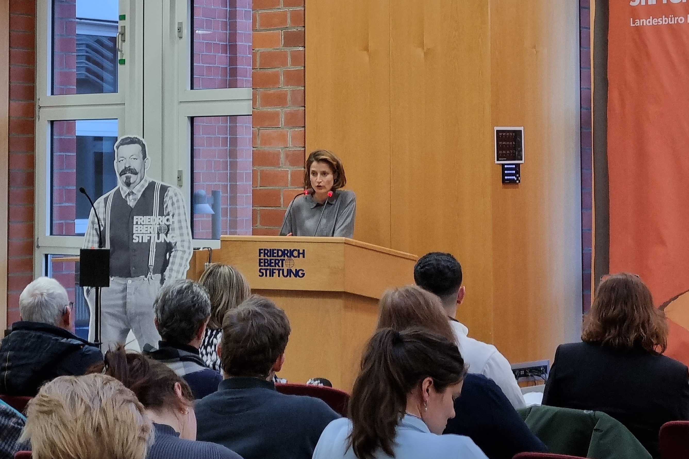 Veranstaltung Rückblick Gender | Gender und Vielfalt | Geschlechterpolitik - Was tun? Rückblick | Was tun gegen Anti-Feminismus in Europa? Für die Gleichstellung von Frauen und Mädchen gab es aufgrund der Corona-Krise, Kriegen und Extremismus die letzten Jahre weltweit Rückschritte. Laut UN Women dauert die Gleichstellung noch 285 Jahre. Seitdem Frauen und Queers für ihre Rechte kämpfen, gibt es Widerstände dagegen, auch in Deutschland. Hass auf ‚Gender-Ideologie‘, Verunklimpfung von Feminismus und Hetze im Netz gehen einher mit einem Rollback patriarchaler Geschlechterordnung, Rollenmuster und Strukturen. Problematisch ist, dass Antifeminismus weit in die Mitte der Gesellschaft reicht, denn leider tragen die antifeministischen Diskurse Früchte. Das macht u.a. die „Leipziger Autoritarismus-Studie“ deutlich. Die Gesellschaft ist polarisiert. Es gibt mehr Feminist*innen, aber auch mehr Antifeminismus. Was tun? Wie kann verständlich werden, dass Gleichberechtigung essenziell für eine demokratische Gesellschaft ist? Welche Strategien gibt es gegen Antifeminismus? Zum Internationalen Frauentag - Was tun gegen Antifeminismus? Veranstaltung und Diskussion am 06.03.2023 in der FES Bonn Für die Gleichstellung von Frauen und Mädchen gab es aufgrund der Corona-Krise, Kriegen und Extremismus die letzten Jahre weltweit Rückschritte. Laut UN Women dauert die Gleichstellung noch 285 Jahre. Seitdem Frauen und Queers für ihre Rechte kämpfen, gibt es Widerstände dagegen, auch in Deutschland. Hass auf ‚Gender-Ideologie‘, Verunklimpfung von Feminismus und Hetze im Netz gehen einher mit einem Rollback patriarchaler Geschlechterordnung, Rollenmuster und Strukturen. Problematisch ist, dass Antifeminismus weit in die Mitte der Gesellschaft reicht, denn leider tragen die antifeministischen Diskurse Früchte. Das macht u.a. die „Leipziger Autoritarismus-Studie“ deutlich. Die Gesellschaft ist polarisiert. Es gibt mehr Feminist*innen, aber auch mehr Antifeminismus. Was tun? Wie kann verständlich werden, dass Gleichberechtigung essenziell für eine demokratische Gesellschaft ist? Welche Strategien gibt es gegen Antifeminismus? In Bonn wurden anlässlich des Internationalen Frauentages diese Fragen aufgegriffen. An der Podiumsdiskussion waren Jessica Rosenthal, MdB, Bundesvorsitzende der JUSOS, Carolin Wiedemann, Journalistin, Soziologin und Autorin („Zart und Frei – vom Sturz des Patriarchats“) sowie Fikri Anıl Altıntaş, #HeForShe-Botschafter von UN Women Deutschland beteiligt´, moderiert von Franziska Hilfenhaus, Journalistin und Autorin. Eine allgemein gültige Definition von Feminismus gibt es nicht. Kurzgefasst handelt es sich um eine Haltung, die sich an Freiheit, Gleichstellung, und der Durchsetzung der juristischen, politischen und gesellschaftlichen Rechte aller Geschlechter orientiert. Feminismus ist eine politische und soziale Bewegung, die sich dafür einsetzt, dass alle Menschen unabhängig von ihrer Geschlechtsidentität gleichermaßen selbstbestimmt leben, selbst über ihre Körper und ihre Zeit verfügen können. Der feministische Kampf richtet sich zudem gegen ein patriarchales, sexistisches und diskriminierendes System. Es existieren zahlreiche feministische Konzepte, Theorien und Ziele. ‚Antifeminismus‘ bedeutet hingegen die Verneinung von Feminismus und aller Feminismen, und die Ablehnung dieser Ziele. Hedwig Dohm (1831-1931) hat den Begriff ‚erfunden‘. Antifeministische Forderungen unterstützen Privilegien für Männer und das Patriarchat. Im Extremfall münden menschenverachtende Ideologien in Hass und Gewalt. Feindbilder und antifeministische Botschaften – getragen von rechtspopulistischen und extremen Akteur_innen – gewinnen an Zulauf und stellen eine Gefahr für die Demokratie dar. Carolin Wiedemann gab eingangs einen Impuls zu historischen Hintergründen und Ursachen antifeministischer Ideologien. Oftmals ist Antifeminismus eine Reaktion auf neue, feministische Errungenschaften. Ob es um Frauenbewegungen Anfang des 20. Jahrhunderts, oder in den 60er Jahren ging, stets gab es ein antifeministisches Echo. Das sei vor nicht allzu langer Zeit bei der Me-Too-Debatte sichtbar geworden, auf die die rechte Szene verstärkt negativ reagierte. Hauptursachen des Antifeminismus sind laut Wiedemann tiefsitzende, patriarchale Ideologien in der Erziehung, Angst vor Machtverlust sowie der Wunsch nach Sicherheit. Je prekärer die ökonomische Situation ist, desto größer sei auch die Verunsicherung. Gerade dann schenken Menschen dem Narrativ der Bedrohung durch Feminismus Glauben. Die Sicherheit sei vermeintlich für viele der Wunsch nach Rückkehr zu alten Systemen. Das Ergebnis antifeministischer Mobilisierung von AfD und anderen rechten Kräften zeichnet sich in der Leipziger Autoritarismusstudie ab. 2022 war fast ein Viertel der Bevölkerung überzeugt davon, Feminismus sei eine Bedrohung der gesellschaftlichen Ordnung, was eine deutliche Zunahme von mehr als 6 Prozentpunkten zeigt. Carolin Wiedemann sieht ein Übersetzungsproblem in der Gesellschaft, denn Feminismus werde als Gefahr für das „natürliche, gottgegebene und traditionelle“ Familienbild und als „Gender-Wahnsinn“ verunglimpft. Auch konservative und liberale Lager tragen Antifeminismus mit, indem sie sich über inklusive Sprache lustig machen. „Feminismus wird häufig als autoritäre Bewegung abgetan, als Bedrohung dargestellt.“ Diejenigen, die aus Verunsicherung und nicht aus ideologischer Überzeugung Feminismus ablehnen, werden zu wenig erreicht. Das zu ändern, die Problematik besser zu „übersetzen“, würden zum Teil die Medien verantworten. #HeForShe-Botschafter Altıntaş kritisierte die starke Ungleichverteilung von care-Arbeit und zweifelt das Konzept von Männlichkeit und ihrer Performance an. Sie müsse besonders im Zusammenhang mit Kriminalität hinterfragt werden. „Besteht die Notwendigkeit, an Männlichkeit, an binärer Ordnung und Machtstruktur festzuha