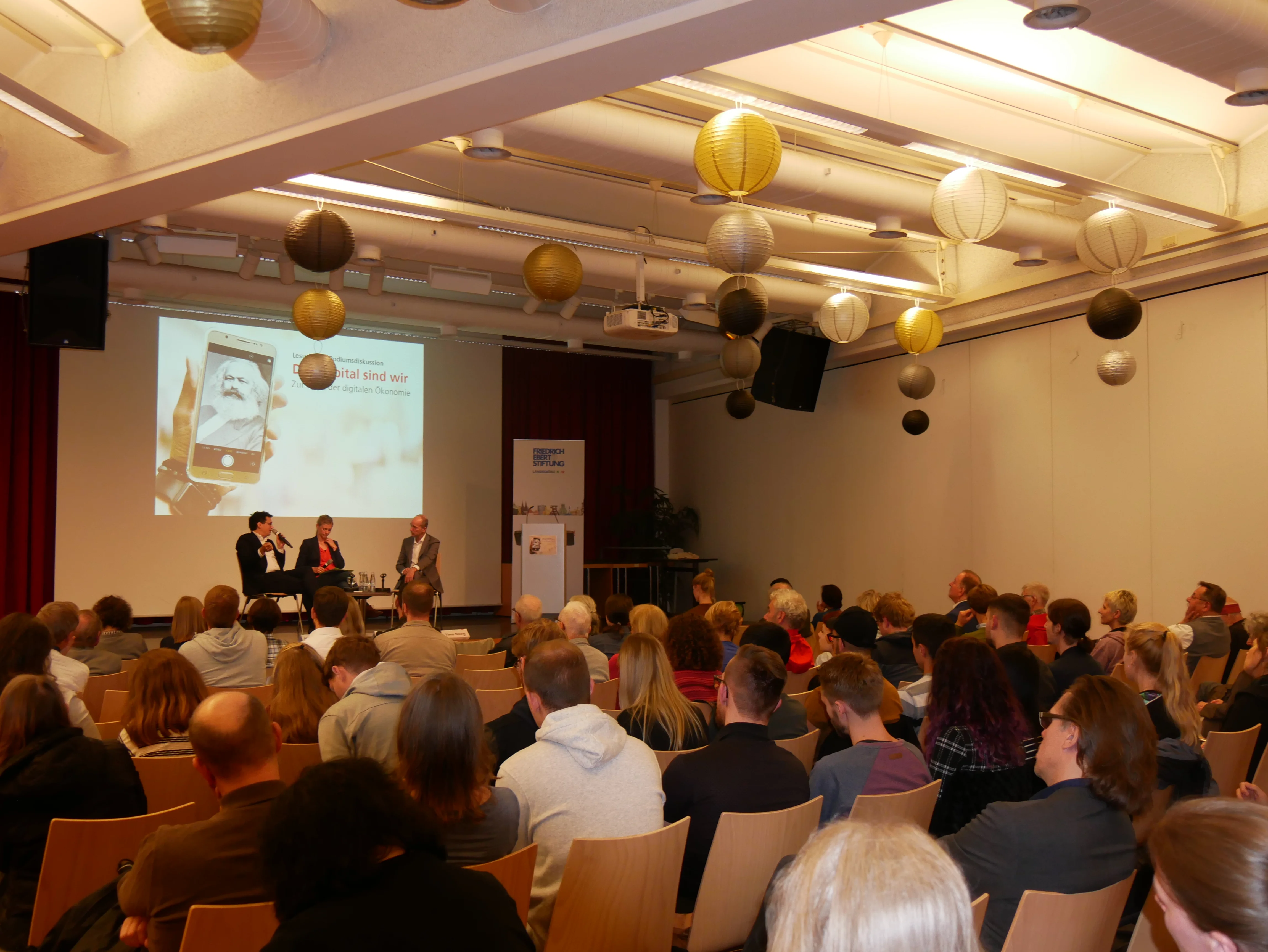 Daum skizzierte auf der Veranstaltung des Landesbüros NRW der Friedrich-Ebert-Stiftung und der Volkshochschule Düsseldorf die Folgen der schon entstandenen Machtkonzentration von Internet-Giganten und warnte vor den entsprechenden Gefahren praktisch nicht zu kontrollierender Auswüchse. Im Gespräch mit dem Landtagsabgeordneten und Sprecher im Ausschuss für Kultur und Medien Alexander Vogt und dem Publikum stellte der Autor unter der Moderation von Katrin Schömann zudem Ideen und Gedanken zu einer positiven, gemeinwohlorientierten  Nutzung von Daten und Technologien in einer weiterhin selbstbestimmten Gesellschaft zur Diskussion.