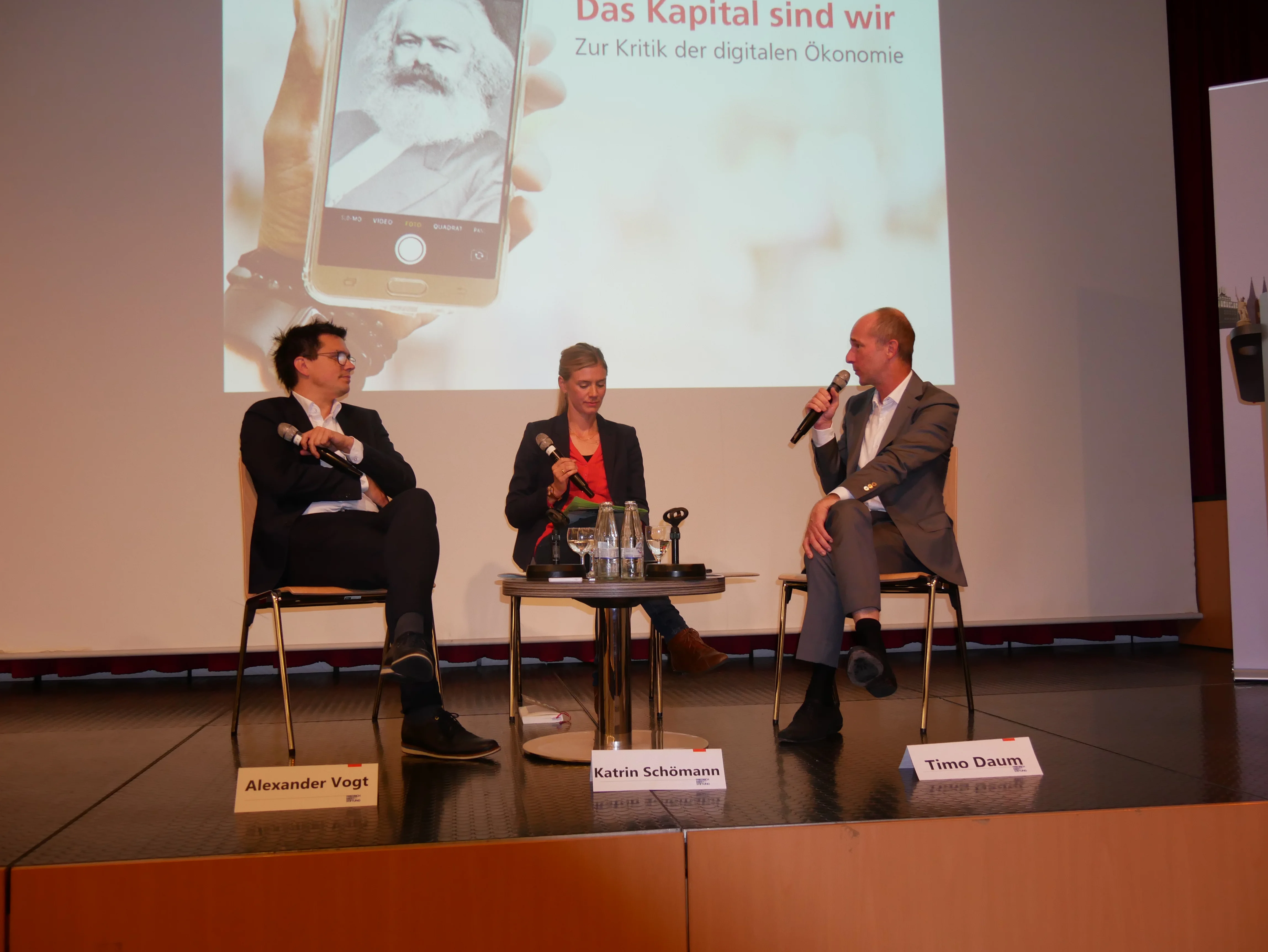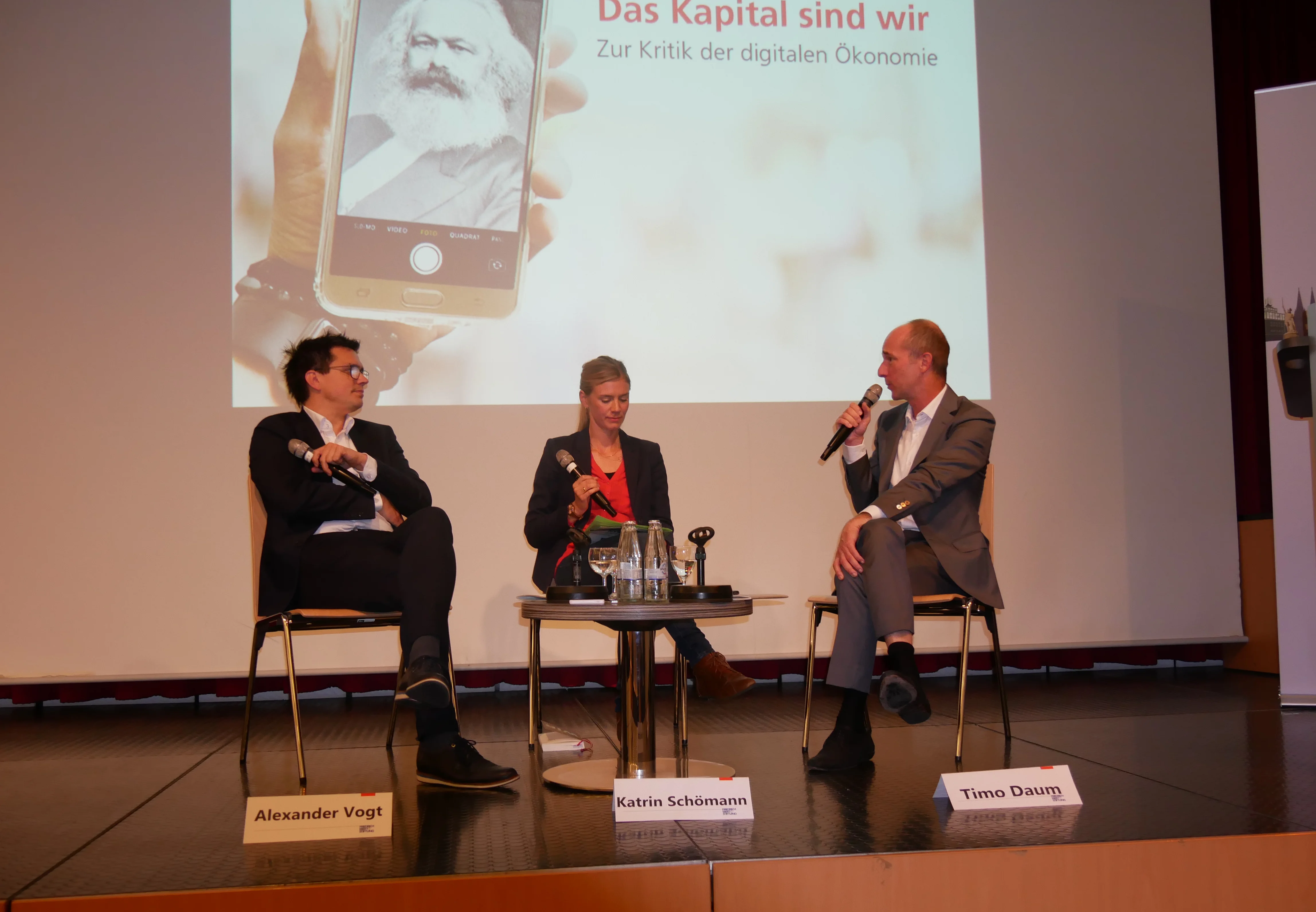 Lesung und Podiumsdiskussion am Dienstag, den 1. Oktober 2019 in der Volkshochschule Düsseldorf mit Timo Daum, Autor des Buchs "Das Kapital sind wir", und Alexander Vogt, MdL und Sprecher im Ausschuss für Kultur und Medien.