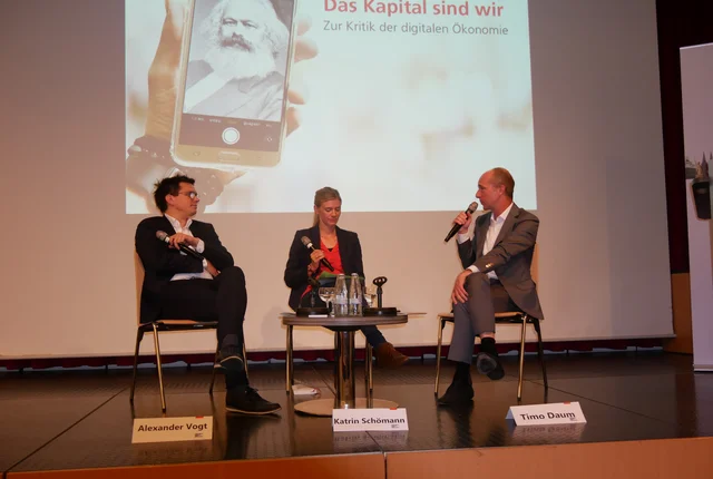 Rückblick Digitalisierung | Demokratie Das Kapital sind wir: Zur Kritik der digitalen Ökonomie 01.10.2019 HA 01.10.2019 18:00 bis 01.01.1970 01:00 - Volkshochschule Düsseldorf Lesung und Podiumsdiskussion am Dienstag, den 1. Oktober 2019 in der Volkshochschule Düsseldorf mit Timo Daum, Autor des Buchs "Das Kapital sind wir", und Alexander Vogt, MdL und Sprecher im Ausschuss für Kultur und Medien. Ruf nach Digitalwende: „Das Proletariat des digitalen Kapitalismus sind wir alle“ Die digitale Technologie hat sich zur maßgeblichen Größe unseres Alltages entwickelt. In Gesellschaft, Wirtschaft, Politik und für beinahe alle Individuen sind digitale Kommunikationsmittel praktisch nicht mehr wegzudenken. Die Digitalisierung ist im Zuge des rasanten Fortschritts längst schon zum bestimmenden Wirtschaftsfaktor erwachsen und beeinflusst maßgeblich Handlungen, Gedanken sowie Gefühle gleichermaßen. Zudem revolutioniert die Digitalisierung unser Wirtschaftssystem. Digitale Plattformen wie Google, Amazon und Facebook gehören längt zu den weltweit führenden Wirtschaftsunternehmen. Im digitalen Kapitalismus schafft nicht mehr nur die Produktion industrieller Waren die Grundlage für Kapitalvermehrung, sondern die Macht über Daten und ihre algorithmen-basierte Nutzung durch allgewaltige Internet-Monopolisten. Digitale Plattformen wie Google, Amazon und Facebook gehören längt zu den weltweit führenden Wirtschaftsunternehmen. In der Lesung aus seinem preisgekrönten Buch „Das Kapital sind wir - zur Kritik der digitalen Ökonomie“ zeichnete Timo Daum im Saal der Volkshochschule Düsseldorf einschneidende Veränderungen auf dem Weg in die neue Ära eines auch postfossilen Kapitalismus nach: Algorithmen werden zu seinen wichtigsten Maschinen, Daten zu deren essenziellen Rohstoffen und Informationen zur begehrten Ware. Ziel ist nicht mehr der gewinnbringende Verkauf von fabrikmäßig hergestellten Produkten, sondern die Organisation von Zugängen zu Wissen und möglichst umfangreichen Informationen über möglichst alles. Daum skizzierte auf der Veranstaltung des Landesbüros NRW der Friedrich-Ebert-Stiftung und der Volkshochschule Düsseldorf die Folgen der schon entstandenen Machtkonzentration von Internet-Giganten und warnte vor den entsprechenden Gefahren praktisch nicht zu kontrollierender Auswüchse. Im Gespräch mit dem Landtagsabgeordneten und Sprecher im Ausschuss für Kultur und Medien Alexander Vogt und dem Publikum stellte der Autor unter der Moderation von Katrin Schömann zudem Ideen und Gedanken zu einer positiven, gemeinwohlorientierten Nutzung von Daten und Technologien in einer weiterhin selbstbestimmten Gesellschaft zur Diskussion. Das entsprechende Bedürfnis gerade nach Schutz vor „Datenkraken“ verdeutlichte Barbara Kokoska-Thiemann von der ausrichtenden VHS Düsseldorf in ihrem Begrüßungswort: „Ich lebe in einer Welt, von der ich glaube, dass ich bestimmte Prozesse immer noch beeinflusse, und ich möchte das auch weiterhin können.“ Henrike Allendorf von der FES stimmte daraufhin mit der Begründung für die Auszeichnung von Daums Werk als „Das politische Buch 2018“ der Friedrich-Ebert-Stiftung für „Literatur, die sich kritisch mit gesellschaftspolitischen Fragestellungen auseinandersetzt und richtungsweisende Denkanstöße gibt“, auf den anschließenden Vortrag des Autors ein: „Das Buch ist ein Appell, kritisch zu denken und politisch zu handeln, um den demokratischen Gestaltungsanspruch zu verteidigen.“ Daum leitete mit einer Zeitreise durch die Epochen von Karl Marx im industriellen Frühkapitalismus des 19. Jahrhunderts, des österreichischen Ökonomen Joseph Schumpeter und dessen Theorie von der „schöpferischen Zerstörung“ Mitte des vergangenen Jahrhunderts sowie von der Disruptions-These des US-Wirtschaftswissenschaftler Clayton Christensen an der Schwelle zum 21. Jahrhundert in die Thematik ein. Der Physiker erläuterte, dass der Kapitalismus schon immer „anders als ein fester Kristall als ein sich wandelnder Organismus entwickelt und selbst transformiert, überraschend wandlungsfähig ist und an Krisen wächst und erstarkt“. Trotz seiner heutzutage abermals „radikalen Veränderung“ sei der Kapitalismus „in seinem Kern gleichgeblieben durch den Drang des Kapitals zu seiner Vermehrung, seine ständigen Suche nach neuen Möglichkeiten und der Veränderung seiner Erscheinungsform“. Im Zeitalter der Digitalisierung jedoch, sagte Daum weiter, habe sich das grundlegende Szenario verändert: Die Maschinen von einst seien nunmehr Algorithmen, und die frühere Arbeit unzähliger tausend Menschen als Quelle des Mehrwerts für das Kapital würde heute im Netz von Milliarden rund um den Globus durch die Schaffung von Inhalten und Bereitstellung von Wissen geleistet. Dieses gemeinschaftliche Werk der Weltbevölkerung, deren Mitglieder in einer Doppelfunktion als Produzenten und Konsumenten agieren würden, sei die von nur wenigen Personen verwaltete Hauptressource aller Internet-Giganten wie Google, Amazon oder Facebook. „Das öffentliche Gut“, schlussfolgerte Daum, „ist kolonialisiert.“ „Das Proletariat des digitalen Kapitalismus sind wir alle“, so Daum. Durch den technischen Fortschritt habe der digitale Kapitalismus einen neuen Gesellschaftsvertrag etabliert: Statt Arbeit gegen Geld heiße heute die Devise Daten gegen Bequemlichkeit. Daum bezeichnete die Entwicklung als „Grund für eine Debatte über Alternativen“ und schloss seine Analyse mit der Forderung: „Wie eine Verkehrs- und Energiewende brauchen wir auch eine Datenwende. 75 Prozent der Daten entstehen durch uns User, aber wir wissen nichts darüber, und sie gehören uns auch nicht - wir brauchen eine Kritik der Datengesellschaft.“ So rasant die Entwicklung voranschreitet, so schleppend verläuft noch die Bewusstseinsbildung für die Gesamtproblematik, meinte Daums Gesprächspartner Vogt zu Beginn der anschließenden Podiumsdiskussion. Die wirkende