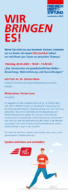 Rückblick Digitale Formate (NICHT anklicken, bitte spez. Unterkategorie wählen) Demokratie und Gesellschaft FES LiveChat | Das Coronavirus als gesellschaftliches Risiko - Bewertung, Wahrnehmung und Auswirkungen. 20.04.2020 18:00 bis 20.04.2020 19:00 - Online LiveChat Terminexport im ICS-Format Im Gespräch mit dem Risikoforscher Prof. Dr. Dr. Ortwin Renn vom Institut für transformative Nachhaltigkeitsforschung IASS in Potsdam wollen die aktuelle Corona-Krise von der Warte von gesellschaftlicher Risikobewertung und -wahrnehmung betrachten. Montag, 20.04.2020 / 18.00 – 19.00 Uhr / FES LiveChat Das Coronavirus als gesellschaftliches Risiko - Bewertung, Wahrnehmung und Auswirkungen. mit Prof. Dr. Dr. Ortwin Renn, IASS Potsdam Im Gespräch mit dem Risikoforscher Prof. Dr. Dr. Ortwin Renn vom Institut für transformative Nachhaltigkeitsforschung IASS in Potsdam wollen die aktuelle Corona-Krise von der Warte von gesellschaftlicher Risikobewertung und -wahrnehmung betrachten. Wie nimmt die Politik die Risikobewertung vor? Welche Mechanismen greifen hier und wie ist die Rolle der (medizinischen) Wissenschaft in dieser Bewertung zu betrachten? Was lässt sich über die Wahrnehmung des Risikos in der Bevölkerung sagen? Und welche Risiken birgt die Pandemie für unsere Gesellschaftsform auch in der Zukunft? Wir laden Sie herzlich zu diesem spannenden Input und zu einer gemeinsamen Chatdiskussion ein. Bitte melden Sie sich über den Anmeldebutton an. Am Morgen des 20.4. erhalten Sie den Link, um sich ins zoom-Meeting einzuloggen. Datenschutz: Die Friedrich-Ebert-Stiftung nutzt für ihre Onlineangebote die leistungsfähige Software der US-Firma www.zoom.us. Die technische Infrastruktur von Zoom ist auf US-Servern hinterlegt. Die FES selbst legt im Zoom-System keine Daten von Teilnehmenden an. Das Anmeldemanagement erfolgt ausschließlich über die FES-eigene Datenbank. Im Sinne von Datensparsamkeit ist es möglich, den Zoom-Raum mit abgewandelter Namensgebung (z.B. nur Vorname oder Dienststelle) zu betreten. Für weitere Informationen siehe: https://zoom.us/de-de/privacy.html. Die Audio- und Webcam-Nutzung steht während des Live-Chat nur den Referent_innen und Moderator_innen zur Verfügung. Die Teilnehmenden haben die Möglichkeit die Chat-Funktion für Fragen und Kommentare zu nutzen. Eine Verpflichtung dazu besteht selbstverständlich nicht. Einladungsflyer FES-LiveChat 20.4. 108 KB Friedrich-Ebert-Stiftung · Live-Chat | Das Coronavirus als gesellschaftliches Risiko - Bewertung, Wahrnehmung und Auswirkungen. Montag, 20.04.20 +++ ONLINE +++ freie Plätze Das Coronavirus als gesellschaftliches Risiko - Bewertung, Wahrnehmung und Auswirkungen Veranstaltungsnummer: 247523 – als .ics herunterladen Im Gespräch mit dem Risikoforscher Prof. Dr. Dr. Ortwin Renn vom Institut für transformative Nachhaltigkeitsforschung IASS in Potsdam wollen wir die aktuelle Corona-Krise von der Warte von gesellschaftlicher Risikobewertung und -wahrnehmung betrachten. Wie nimmt die Politik die Risikobewertung vor? Welche Mechanismen greifen hier und wie ist die Rolle der (medizinischen) Wissenschaft in dieser Bewertung zu betrachten? Was lässt sich über die Wahrnehmung des Risikos in der Bevölkerung sagen? Und welche Risiken birgt die Pandemie für unsere Gesellschaftsform auch in der Zukunft? Wir laden Sie herzlich zu diesem spannenden Input und zu einer gemeinsamen Chatdiskussion ein. Folgen Sie einfach dem Anmeldelink, den Link zur Teilnahme erhalten Sie am Morgen des 20.04.2020 per Email. Termin Montag, 20.04.2018:00-19:00 Uhr Teilnahmepauschale keine Veranstaltungsort +++ ONLINE +++ Ansprechpartner_in Dr. Annika Arnold annika.arnold@fes.de Kontaktanschrift Friedrich-Ebert-StiftungLandesbüro NRWGodesberger Allee 14953175 BonnTel. 0228-883-7202, Fax 0228-883-9208