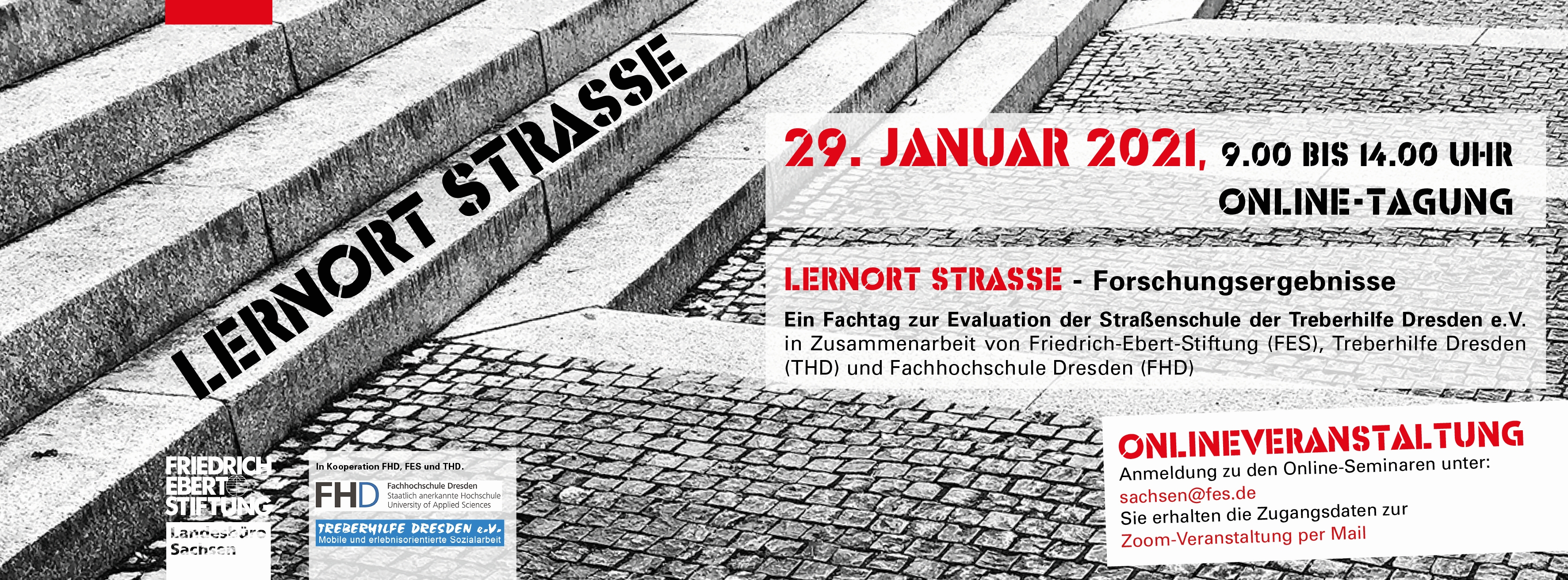Veranstaltung Rückblick Pressemitteilung Jugend Lernort Straße. Ein Fachtag zur Evaluation der Straßenschule (alt) 29.01.2021 09:00 bis 01.01.1970 01:00 - online Jungen Menschen, die aus unterschiedlichen Gründen bisher keinen Schulabschluss erlangen konnten, wird in Dresden auf Grundlage der Arbeitsweltbezogenen Jugendsozialarbeit (§ 13 SGB VIII) durch die Straßenschule der Treberhilfe Dresden e.V. (THD) eine besondere Unterstützungsform angeboten. Sozialarbeit und Reformpädagogik inspirieren sich dabei gegenseitig. Die Straßenschule bietet sozialarbeiterische Begleitung, Beratung und Unterstützung für eine Personengruppe, die ein Misslingen des Übergangs in die Erwachsenenphase oft auf ein biographisches Abstellgleis führt. Innerhalb eines vitalisierenden und horizontalen Beziehungsangebotes werden selbstmotivierte Lernprozesse möglich. Durch Vorbereitung auf eine Schulfremdenprüfung kann im Anschluss ein Haupt- oder Realschulabschluss erlangt werden. Das Angebot der Straßenschule wurde im Auftrag des Jugendamtes der Stadt Dresden von 2019 bis 2020 in einem qualitativen und partizipativen Verfahren unter Leitung von Prof. Dr. Markus Andrä (FHD) evaluiert. Die Untersuchung konnte auch unter den Bedingungen der Covid-19-Pandemie fortgesetzt werden. Innerhalb der Straßenschule wurde innerhalb kürzester Zeit von analoger Begleitung in Lern-Workshops auf eine digitale Beschulung und auf Angebote zur Förderung des Selbststudiums umgestellt. Im Rahmen der Veranstaltung werden von Dr. Maren Behnert und Prof. Dr. Markus Andrä die Ergebnisse der Evaluation vorgestellt. Prof. Dr. Ronald Lutz (FH Erfurt) referiert zur befreienden (Sozial-)Pädagogik, stellt die Ansätze von Paulo Freire dar und weist auf aktuelle Herausforderungen Sozialer Arbeit hin. Im Rahmen einer Podiumsdiskussion werden die Ergebnisse von Expert_innen aus dem Bereich der Jugendhilfe und der Politik kritisch hinterfragt und eingeordnet. Ein Fachtag zur Evaluation der Straßenschule der Treberhilfe Dresden e.V. in Zusammenarbeit von Friedrich-Ebert-Stiftung (FES), Treberhilfe Dresden (THD) und Fachhochschule Dresden (FHD) Aufgrund der Covid-19-Pandemie wird die Veranstaltung online stattfinden. Die Veranstaltung findet online als ZOOM-Gespräch statt. Angemeldete Teilnehmer_innen erhalten die Zugangsdaten vor der Veranstaltung per E-Mail zugeschickt. Freitag, 29.01.21 online freie Plätze Lernort Straße. Ein Fachtag zur Evaluation der Straßenschule Veranstaltungsnummer: 251819 – als .ics herunterladen Jungen Menschen, die aus unterschiedlichen Gründen bisher keinen Schulabschluss erlangen konnten, wird in Dresden auf Grundlage der Arbeitsweltbezogenen Jugendsozialarbeit (§ 13 SGB VIII) durch die Straßenschule der Treberhilfe Dresden e.V. (THD) eine besondere Unterstützungsform angeboten. Sozialarbeit und Reformpädagogik inspirieren sich dabei gegenseitig. Die Straßenschule bietet sozialarbeiterische Begleitung, Beratung und Unterstützung für eine Personengruppe, die ein Misslingen des Übergangs in die Erwachsenenphase oft auf ein biographisches Abstellgleis führt. Innerhalb eines vitalisierenden und horizontalen Beziehungsangebotes werden selbstmotivierte Lernprozesse möglich. Durch Vorbereitung auf eine Schulfremdenprüfung kann im Anschluss ein Haupt- oder Realschulabschluss erlangt werden.Das Angebot der Straßenschule wurde im Auftrag des Jugendamtes der Stadt Dresden von 2019 bis 2020 in einem qualitativen und partizipativen Verfahren unter Leitung von Prof. Dr. Markus Andrä (FHD) evaluiert. Die Untersuchung konnte auch unter den Bedingungen der Covid-19-Pandemie fortgesetzt werden. Innerhalb der Straßenschule wurde innerhalb kürzester Zeit von analoger Begleitung in Lern-Workshops auf eine digitale Beschulung und auf Angebote zur Förderung des Selbststudiums umgestellt.Im Rahmen der Veranstaltung werden von Dr. Maren Behnert und Prof. Dr. Markus Andrä die Ergebnisse der Evaluation vorgestellt. Prof. Dr. Ronald Lutz (FH Erfurt) referiert zur befreienden (Sozial-)Pädagogik, stellt die Ansätze von Paulo Freire dar und weist auf aktuelle Herausforderungen Sozialer Arbeit hin.Im Rahmen einer Podiumsdiskussion werden die Ergebnisse von Expert_innen aus dem Bereich der Jugendhilfe und der Politik kritisch hinterfragt und eingeordnet. Ein Fachtag zur Evaluation der Straßenschule der Treberhilfe Dresden e.V. in Zusammenarbeit von Friedrich-Ebert-Stiftung (FES), Treberhilfe Dresden (THD) und Fachhochschule Dresden (FHD)Aufgrund der Covid-19-Pandemie wird die Veranstaltung online stattfinden.Die Veranstaltung findet online als ZOOM-Gespräch statt. Angemeldete Teilnehmer_innen erhalten die Zugangsdaten vor der Veranstaltung per E-Mail zugeschickt. Dateien FES_FB_851x315_Lernort Strasse_2021.jpg Termin Freitag, 29.01.2109:00-14:00 Uhr Teilnahmepauschale keine Veranstaltungsort online Ansprechpartner_in Eter Hachmann sachsen@fes.de Kontaktanschrift Friedrich-Ebert-StiftungLandesbüro SachsenBurgstraße 2504109 LeipzigTel. 0341-9602160 und -9602431, Fax 9605091E-Mail: sachsen@fes.deFriedrich-Ebert-StiftungBüro DresdenObergraben 17 A01097 DresdenTel. 0351-80468-03 und -04, Fax 0351-80468-05E-Mail: sachsen@fes.de