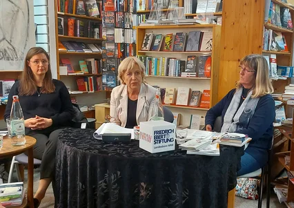 Veranstaltung Rückblick Training/Seminar Demokratie und Gesellschaft Nachbericht | Geist, Glaube und Gefahr für die Demokratie? Über Verschwörungsglauben in der Esoterik und der gesellschaftlichen Mitte. 21.10.2022 GE Bild: Urheber: FES LB NRW Bild: Urheber: FES LB NRW Am 21.10.2022 haben wir zu einer besonderen Lesung in die Buchhandlung Bibabuze in Düsseldorf-Bilk geladen: Katharina Nocun stellte ihr frisch erschienenes Buch „Gefährlicher Glaube“ vor, in dem sie sich, gemeinsam mit ihrer Co-Autorin Pia Lamberty der radikalen Gedankenwelt der Esoterik stellte. Gleich zu Beginn der Diskussion zeichnete sie den Weg zu dem Buch nach: während der Recherchen zu den beiden Vorgängern „Fake Facts“ und „True Facts“ war den beiden Autorinnen bereits die Rolle von Verschwörungsglauben in den Bereichen der Esoterik und vor allem der sogenannten Alternativen Medizin aufgefallen: „Viele Angehörige von Verschwörungsgläubigen erzählten uns in Gesprächen zu den beiden Büchern, dass esoterische Gedanken schon lange Zeit eine Rolle im Leben der angehörigen Betroffenen spielten. So entstand die Idee, diesem Phänomen ein eigendes Buch zu widmen“. Auch Sabine Riede, Geschäftsführerin der Beratungsstelle Sekten-Info NRW, beobachtet in ihrer Arbeit seit Beginn der Nullerjahre einen regelrechten Boom der Esoterik. Sie führt die auf eine zunehmende Orientierungslosigkeit in (scheinbar) immer unsicheren Zeiten zurück: „Die Esoterik verspricht den Menschen eine heile Welt“. Dabei werden die Gefahren oft unterschätzt oder gar nicht wahrgenommen. Gerade im medizinischen Bereich kann dies verheerende Folgen haben, wenn bspw. eine lebensrettende Chemotherapie bei einer Krebserkrankung mit Verweis auf homöopathische Alternativmethoden verweigert wird. Als besonders erschreckend beschreibt Katharina Nocun die gefährliche Allianz von Esoteriker*innen mit rechten und rechtsextremen Kräften. Was viele Beobachter*innen zunächst als widersprüchlich gesehen haben, war das Bild allem Anschein nach eher politisch links stehender Personen Seit an Seit mit Reichsbürger*innen und Größen der politischen Rechten auf den sogenannten Querdenker*innen-Demonstrationen. Elisabeth Müller-Witt, Landtagsabgeordnete in der SPD-Fraktion im Landtag von NRW, führt aus, dass in esoterischen Weltbildern Verschwörungserzählungen mit menschenverachtender, oft antisemitischer und antifeministischer Ideologie, bereits in ihren Grundzügen angelegt sind. Als Mitglied des Hauptausschusses fällt auch der Verfassungsschutzbericht in ihre Zuständigkeit, hier wurde nun zum ersten Mal auch die Szene der Querdenker*innen besonders in Augenschein genommen. Menschen, die Verschwörungserzählungen anheimfallen sind oft nicht mehr für einen demokratischen Wettbewerb der Ideen zu erreichen. Das geschlossene Weltbild von Esoterik, Verschwörungsmythos, Ablehnung von staatlichen Autoritäten entzweit nicht nur Familien und Freundschaften, sondern treibt auch einen Keil zwischen Menschen in einer demokratischen Gesellschaft. Hier gilt es, Ausstiegsangebote zu machen, sowohl im privaten und persönlichen Bereich, als auch in der politischen Bildung. Dies ist insbesondere ein Anliegen der Friedrich-Ebert-Stiftung, was schlussendlich auch zu dieser Veranstaltung geführt hat. Konkret gibt Katharina Nocun den Teilnehmenden, die sich engagiert an der Diskussion und dem inhaltlichen Austausch beteiligten noch folgende Instrumente mit auf den Weg: Gegenrede üben! Dabei geht es nicht darum, einen überzeugten Verschwörungsgläubigen überzeugen zu wollen, sondern darum, Behauptungen aus Verschwörungsmythen im öffentlichen Raum nicht unwidersprochen stehen zu lassen. Wenn der Eindruck entsteht, eine nahestehende Person droht in Welterklärungsmodelle von Verschwörungsmythen abzugleiten: nicht abwarten! Je früher man das Gespräch sucht, desto eher besteht die Chance, diese Person überhaupt noch zu erreichen. Du bist nicht alleine! Niemand muss sich im privaten und im öffentlichen Umfeld allein gegen Verschwörungsgläubige durchsetzen. Es gibt Beratungsstellen, die helfen können, Vereine, Wissenschaftler*innen, die sich zu diesem Zweck engagieren. Das bedeutet aber auch: selber anderen Leuten beizustehen, bspw. im Netzt digitale Zivilcourage zu zeigen, Accounts von Menschen, die gegen Nutzer*innen hetzen und diese bedrohen, beim Betreiber einer Plattform zu melden. Gemeinsam können wir uns den Gibt von Verschwörungserzählungen entgegenstellen, für unser persönliches Umfeld genauso, wie für die demokratische und offene Gesellschaft, in der wir leben, und hoffentlich noch lange leben werden.