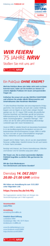 Veranstaltung Training/Seminar Demokratie PubQuiz 2.0 - 75 Jahre NRW 14.12.2021 LP 14.12.2021 20:00 bis 14.12.2021 21:30 - +++ ONLINE +++ Terminexport im ICS-Format Version 2.0 des digitalen PubQuiz zum 75. NRW Jubiläum Weil das PubQuiz dieses Jahr leider nicht mehr zu Ihnen kommen kann, laden wir Sie herzlich zur Version 2.0 unseres digitalen PubQuiz mit neuen und spannenden Fragen ein. Entfachen Sie erneut mit uns das DIGITALE QUIZFIEBER und erfahren Sie wieder allerlei Wissenswertes und Unterhaltsames über Nordrhein-Westfalen! 75 Jahre Nordrhein-Westfalen sind eine ereignisreiche Erfolgs¬geschichte. Eine Geschichte, die nach dem zweiten Weltkrieg begann und von Beginn an durch einen stetigen Wandel geprägt war. Am 23. August 1946 wurden die preußischen Provinzen Nordrhein und Westfalen gemäß der britischen Militärverordnung Nr. 46 zusammengelegt. Der Codename dieses Gründungsprojektes: „Operation Marriage”. 1947 schloss sich der bis dahin jahrhundertelang selbstständige Landesteil Lippe dem neuen Bundesland an. Heute ist NRW in vielerlei Hinsicht ein besonderes Bundesland. Es ist das bevölkerungsreichste Bundesland und eine der bedeutendsten Wirtschaftsregionen Europas. NRW ist vielfäl¬tig, bunt und reich an ganz unterschiedlichen Vergangen-heiten, Herkünften und Lebenseinstellungen. Gespielt wird in kleinen Teams, die wir aus den angemeldeten Personen zufällig bilden. Natürlich können Sie sich auch bereits in festen Teams anmelden. Schreiben Sie uns bei Ihrer Anmeldung einfach in die Hinweise, mit wem Sie gemeinsam in einem Team spielen möchten. Ein PubQuiz OHNE KNEIPE? Genau! Benötigt wird Internet, der Chrome Internetbrowser, Mikrofon und Kamera! Und für Getränke sorgt jeder selbst! Wir freuen uns, Sie zu unserem zweiten, spannenden digitalen PUBQUIZ begrüßen zu dürfen! Wie gut kennen Sie NRW? Mit den Quiz-Moderatoren: Tom Zimmermann und Darren Grundorf Wir bitten um Anmeldung bis zum 13.12.2021. Die Zugangsdaten werden Ihnen am Morgen des Veranstaltungstages per E-Mail zugesandt. 211125 75Jahre PubQuiz 98 KB Dienstag, 14.12.21 +++Online+++ freie Plätze Politischer Quizabend 2.0 - 75 Jahre NRW Veranstaltungsnummer: 256995 – als .ics herunterladen Termin Dienstag, 14.12.2120:00-21:30 Uhr Teilnahmepauschale keine Veranstaltungsort +++Online+++ Ansprechpartner_in Laura Prinz Laura.Prinz@fes.de Kontaktanschrift Friedrich-Ebert-StiftungLandesbüro NRWGodesberger Allee 14953175 BonnTel. 0228-883-7202, Fax 0228-883-9208