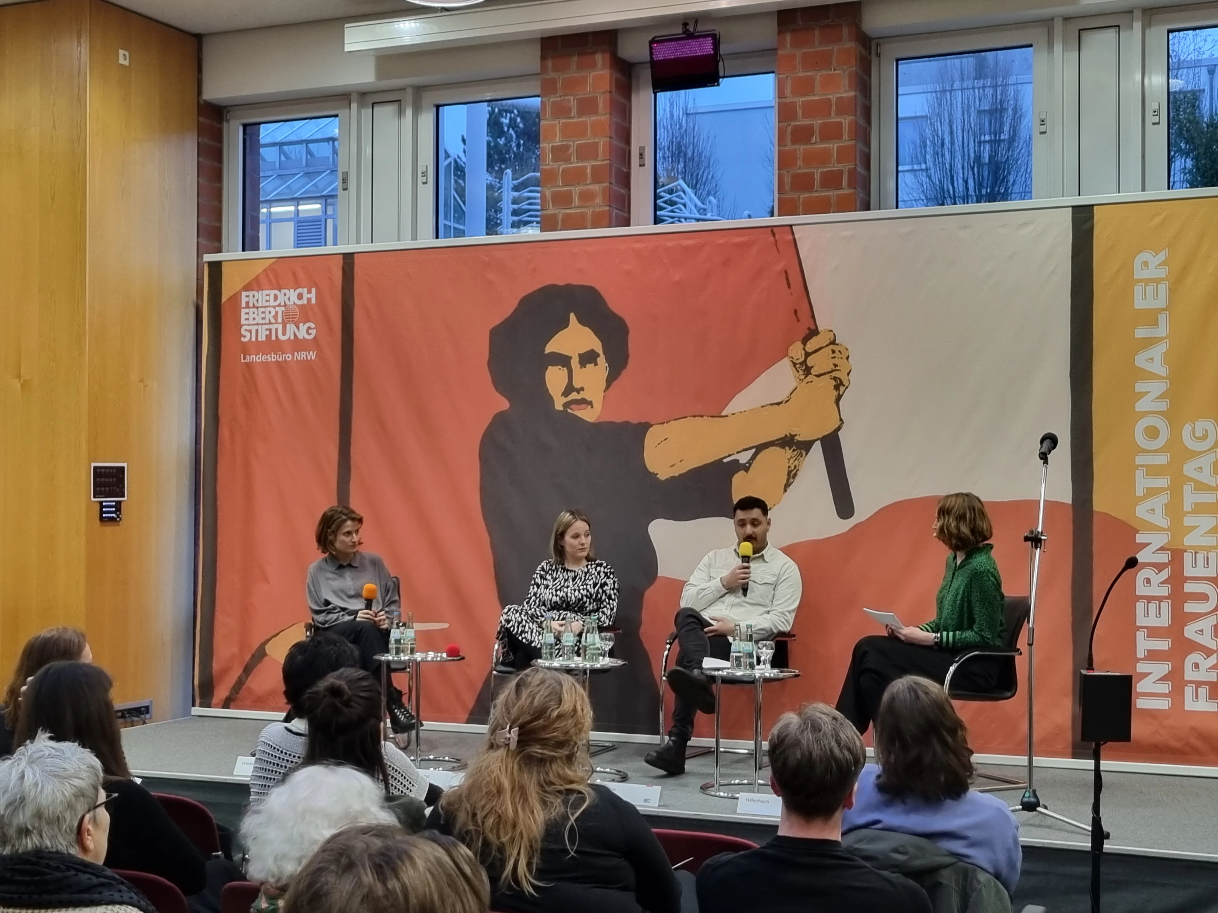 Veranstaltung Rückblick Gender | Gender und Vielfalt | Geschlechterpolitik - Was tun? Rückblick | Was tun gegen Anti-Feminismus in Europa? Für die Gleichstellung von Frauen und Mädchen gab es aufgrund der Corona-Krise, Kriegen und Extremismus die letzten Jahre weltweit Rückschritte. Laut UN Women dauert die Gleichstellung noch 285 Jahre. Seitdem Frauen und Queers für ihre Rechte kämpfen, gibt es Widerstände dagegen, auch in Deutschland. Hass auf ‚Gender-Ideologie‘, Verunklimpfung von Feminismus und Hetze im Netz gehen einher mit einem Rollback patriarchaler Geschlechterordnung, Rollenmuster und Strukturen. Problematisch ist, dass Antifeminismus weit in die Mitte der Gesellschaft reicht, denn leider tragen die antifeministischen Diskurse Früchte. Das macht u.a. die „Leipziger Autoritarismus-Studie“ deutlich. Die Gesellschaft ist polarisiert. Es gibt mehr Feminist*innen, aber auch mehr Antifeminismus. Was tun? Wie kann verständlich werden, dass Gleichberechtigung essenziell für eine demokratische Gesellschaft ist? Welche Strategien gibt es gegen Antifeminismus? Zum Internationalen Frauentag - Was tun gegen Antifeminismus? Veranstaltung und Diskussion am 06.03.2023 in der FES Bonn Für die Gleichstellung von Frauen und Mädchen gab es aufgrund der Corona-Krise, Kriegen und Extremismus die letzten Jahre weltweit Rückschritte. Laut UN Women dauert die Gleichstellung noch 285 Jahre. Seitdem Frauen und Queers für ihre Rechte kämpfen, gibt es Widerstände dagegen, auch in Deutschland. Hass auf ‚Gender-Ideologie‘, Verunklimpfung von Feminismus und Hetze im Netz gehen einher mit einem Rollback patriarchaler Geschlechterordnung, Rollenmuster und Strukturen. Problematisch ist, dass Antifeminismus weit in die Mitte der Gesellschaft reicht, denn leider tragen die antifeministischen Diskurse Früchte. Das macht u.a. die „Leipziger Autoritarismus-Studie“ deutlich. Die Gesellschaft ist polarisiert. Es gibt mehr Feminist*innen, aber auch mehr Antifeminismus. Was tun? Wie kann verständlich werden, dass Gleichberechtigung essenziell für eine demokratische Gesellschaft ist? Welche Strategien gibt es gegen Antifeminismus? In Bonn wurden anlässlich des Internationalen Frauentages diese Fragen aufgegriffen. An der Podiumsdiskussion waren Jessica Rosenthal, MdB, Bundesvorsitzende der JUSOS, Carolin Wiedemann, Journalistin, Soziologin und Autorin („Zart und Frei – vom Sturz des Patriarchats“) sowie Fikri Anıl Altıntaş, #HeForShe-Botschafter von UN Women Deutschland beteiligt´, moderiert von Franziska Hilfenhaus, Journalistin und Autorin. Eine allgemein gültige Definition von Feminismus gibt es nicht. Kurzgefasst handelt es sich um eine Haltung, die sich an Freiheit, Gleichstellung, und der Durchsetzung der juristischen, politischen und gesellschaftlichen Rechte aller Geschlechter orientiert. Feminismus ist eine politische und soziale Bewegung, die sich dafür einsetzt, dass alle Menschen unabhängig von ihrer Geschlechtsidentität gleichermaßen selbstbestimmt leben, selbst über ihre Körper und ihre Zeit verfügen können. Der feministische Kampf richtet sich zudem gegen ein patriarchales, sexistisches und diskriminierendes System. Es existieren zahlreiche feministische Konzepte, Theorien und Ziele. ‚Antifeminismus‘ bedeutet hingegen die Verneinung von Feminismus und aller Feminismen, und die Ablehnung dieser Ziele. Hedwig Dohm (1831-1931) hat den Begriff ‚erfunden‘. Antifeministische Forderungen unterstützen Privilegien für Männer und das Patriarchat. Im Extremfall münden menschenverachtende Ideologien in Hass und Gewalt. Feindbilder und antifeministische Botschaften – getragen von rechtspopulistischen und extremen Akteur_innen – gewinnen an Zulauf und stellen eine Gefahr für die Demokratie dar. Carolin Wiedemann gab eingangs einen Impuls zu historischen Hintergründen und Ursachen antifeministischer Ideologien. Oftmals ist Antifeminismus eine Reaktion auf neue, feministische Errungenschaften. Ob es um Frauenbewegungen Anfang des 20. Jahrhunderts, oder in den 60er Jahren ging, stets gab es ein antifeministisches Echo. Das sei vor nicht allzu langer Zeit bei der Me-Too-Debatte sichtbar geworden, auf die die rechte Szene verstärkt negativ reagierte. Hauptursachen des Antifeminismus sind laut Wiedemann tiefsitzende, patriarchale Ideologien in der Erziehung, Angst vor Machtverlust sowie der Wunsch nach Sicherheit. Je prekärer die ökonomische Situation ist, desto größer sei auch die Verunsicherung. Gerade dann schenken Menschen dem Narrativ der Bedrohung durch Feminismus Glauben. Die Sicherheit sei vermeintlich für viele der Wunsch nach Rückkehr zu alten Systemen. Das Ergebnis antifeministischer Mobilisierung von AfD und anderen rechten Kräften zeichnet sich in der Leipziger Autoritarismusstudie ab. 2022 war fast ein Viertel der Bevölkerung überzeugt davon, Feminismus sei eine Bedrohung der gesellschaftlichen Ordnung, was eine deutliche Zunahme von mehr als 6 Prozentpunkten zeigt. Carolin Wiedemann sieht ein Übersetzungsproblem in der Gesellschaft, denn Feminismus werde als Gefahr für das „natürliche, gottgegebene und traditionelle“ Familienbild und als „Gender-Wahnsinn“ verunglimpft. Auch konservative und liberale Lager tragen Antifeminismus mit, indem sie sich über inklusive Sprache lustig machen. „Feminismus wird häufig als autoritäre Bewegung abgetan, als Bedrohung dargestellt.“ Diejenigen, die aus Verunsicherung und nicht aus ideologischer Überzeugung Feminismus ablehnen, werden zu wenig erreicht. Das zu ändern, die Problematik besser zu „übersetzen“, würden zum Teil die Medien verantworten. #HeForShe-Botschafter Altıntaş kritisierte die starke Ungleichverteilung von care-Arbeit und zweifelt das Konzept von Männlichkeit und ihrer Performance an. Sie müsse besonders im Zusammenhang mit Kriminalität hinterfragt werden. „Besteht die Notwendigkeit, an Männlichkeit, an binärer Ordnung und Machtstruktur festzuha