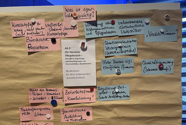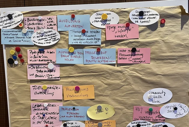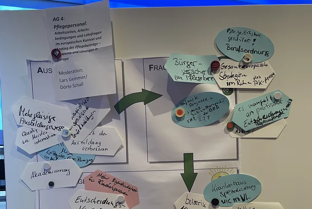Rückblick Gender Rückblick | Zukunft der Pflege in Deutschland und Europa 28.04.2023 16:30 bis 28.04.2023 19:30 - Köln Terminexport im ICS-Format Die anstehende Pflegerefom nahm die FES, Landesbüro NRW, zum Anlass, um in Köln mit rund 80 Teilnehmenden und Expert*innen das Thema Zukunft der Pflege zu diskutieren. Graphic Recording herunterladen Die anstehende Pflegerefom nahm die FES, Landesbüro NRW, zum Anlass, um in Köln mit rund 80 Teilnehmenden und Expert*innen das Thema Zukunft der Pflege zu diskutieren. Die Pflegearbeit steht seit der Corona-Pandemie besonders im Fokus. Beifall, mediale Präsenz und vereinzelte Sonderzahlungen für die sogenannten „systemrelevanten“ Berufe haben allerdings keine relevante Auswirkung auf die Arbeitsbedingungen und die Bezahlung in der Pflege gehabt. In der Pflege muss sich grundlegend etwas ändern. Krankenhäuser und Pflegeeinrichtungen wurden seit den 80er Jahren immer stärker dem Wettbewerb ausgesetzt. Die Einführung von Fallpauschalen und die Pflegeversicherung sollten die hohen Kosten begrenzen. Was sie brachten war Tarifflucht, teils niedrige Löhne, vor allem aber einen verdichteten Arbeitsablauf. Pflegearbeit an kranken und alten Menschen wird nicht nur in Krankenhäusern und Pflegeheimen geleistet, sondern auch in der eigenen Wohnung. Die häusliche Pflege wird entweder durch Familienangehörige übernommen oder durch Pflegehelfer_innen. Frauen aus ost- und mitteleuropäischen Ländern, zumeist aus Polen und der Ukraine, arbeiten überwiegend als Pflege-Helfer_innen bei uns. Wie sind ihre Lohn- und Arbeitsbedingungen? Und ist europaweit der rechtliche Rahmen geklärt? Durch die deutliche Zunahme von Demenzerkrankungen, die demografische Entwicklung und hohe Lebenserwartung der Baby-Boomer wird der Bedarf an Pflegekräften noch steigen. Ausgangslage im Pflegebereich In einem einführenden Vortrag skizzierte Dr. Ruth Abramowski von der Universität Bremen zunächst die Ausgangslage im Pflegebereich. Dieser ist besonders durch den demografischen Wandel der Bevölkerung und den Fachkräftemangel gekennzeichnet. Der Bedarf an Pflege wird weiter steigen, und Schätzungen zufolge werden in der Langzeitpflege bis 2035 rund 180.000 zusätzliche Pflegekräfte benötigt. Mehr als 80 % der Beschäftigten in ambulanten Pflegediensten und in Pflegeheimen sind Frauen. Die Einkommensunterschiede in der Kranken- und Langzeitpflege sind groß. Insgesamt steht der Pflegebereich unverändert unter einem starken Ökonomisierungsdruck. Präsentation herunterladen Live-Ins im häuslichen Umfeld Besonderes Augenmerk legte Dr. Abramowski auf die sogenannten „Live-Ins“, damit sind Pflegekräfte, Haushaltshilfen und häusliche Betreuerinnen gemeint, die im häuslichen Umfeld des Pflegebedürftigen leben. Dieser Bereich hat die letzten Jahre zunehmend an Bedeutung gewonnen, da die meisten Menschen am liebsten zu Hause gepflegt werden würden. Die „Live-Ins“ ziehen aus ärmeren Herkunftsländern in reichere Länder, normalerweise aus dem globalen Süden in den globalen Norden bzw. aus dem Osten Europas in den Westen. Vielfach liegen diesen Arbeitsverhältnissen private Arrangements zugrunde. Deren Zahl wird für Deutschland auf 500.000 bis 700.000 geschätzt. Live-Ins in den DACH-Ländern Die Situation der „Live-Ins“ ist in den DACH-Staaten (Deutschland, Österreich und Schweiz) gesetzlich unterschiedlich geregelt. Österreich führte 1993 das Pflegegeld als universelle Cash-for-Care-Leistung ein. 2007 erfolgte durch das Haushaltsbetreuungsgesetz eine Legalisierung der 24-Stunden-Betreuung. Damit sind die „Live-Ins“ zwar sozialversichert, dennoch gelten für sie weder Höchstarbeitszeiten noch Mindestlöhne. In der Schweiz müssen die „Live-Ins“ als Angestellte beschäftig werden und können sich gewerkschaftlich organisieren. Ihnen steht ein Mindestlohn zu, jedoch gibt es für sie keine Arbeits-, Ruhe und Gesundheitsschutzregelungen. In Deutschland gibt es insbesondere Probleme im Bereich der Arbeitszeit- und Mindestlohngesetzes sowie der rechtlichen Absicherung. Lange und entgrenzte Arbeitszeiten können nicht die Lösung sein. Alle reicheren europäischen Länder stehen vor den Herausforderungen des demographischen Wandels und des Fachkräftemangels. Einfache Lösungen für eine gute Pflege lassen sich daher nicht ohne Weiteres bei unseren Nachbarn finden. Dr. Abramowski schloss ihren Vortrag trotzdem mit einem positiven Fazit: „Es gibt Lösungen, aber wir müssen sie uns zusammenbasteln.“ Kritik am Pflegesystem Im Anschluss an den Vortrag diskutierten Severin Schmidt, Leiter des Landesbüros NRW der FES, Carmen Yüksel-Witte von der Caritas, die Pflegerin, Bloggerin Jeannine Fasold, Dörte Schall, Sozialdezernentin in Mönchengladbach, sowie die Referentin Dr. Ruth Abramowski die Situation in der Pflege, moderiert von Dr. Arno Gildemeister: In den letzten Jahren gab es zahlreiche Änderungen und Ergänzungen in der Pflege, allerdings ohne, dass sie grundlegend reformiert worden wäre. Beispielsweise ist weder eine Pflegevollversicherung (statt Teilkasko) eingeführt noch die Finanzbasis erhöht wurden durch die Ausweitung anderer Einkommensarbeiten. Integrationskurse sind notwendig. Die bürokratischen Verfahren für Fachkräfte aus Drittstaaten dauern zu lange, teilweise gibt es keine Willkommenskultur. Pflegebedürftigkeit ist ein Armutsrisiko. Im Durchschnitt beträgt der Eigenanteil für einen Patienten etwa 2.400 Euro im Monat. Die Pflegeversicherung, die 1995 eingeführt wurde, deckt nur einen Teil der Kosten ab. „Mit dem System kann es so nicht weitergehen“, die Herausforderungen sind riesig. Die Menschen werden älter, und damit wird es immer mehr Demenzkranke und Schlaganfallpatienten geben, die einer intensiven Pflege bedürfen. Die Situation wird verschärft, wenn die Baby-Boomer in Rente gehen. Das Personal ist erschöpft, neues Personal ist nicht in Sicht. Dieser Befund gilt nicht nur für die stationäre, sonder