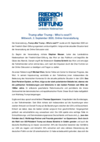Veranstaltung Rückblick Wirtschaft Trump after Trump?! - Who's next? 02.09.2020 18:30 bis 01.01.1970 01:00 - Online Ob das also die richtige Strategie sein wird, die 2016 an Trump verlorenen und im US-Wahlsystem entscheidenden „Swing States“ für die Demokraten zurückzugewinnen? Was für eine Rolle spielt im Wahlkampf die Gesundheitsversorgung in Zeiten von Corona, ein Thema, das in der Vergangenheit zwischen beiden Parteien hart umkämpft war? Und was würde eine zweite Amtszeit von Trump für die deutsch-amerikanischen Beziehungen bedeuten? Die Präsidentschaftswahl in den Vereinigten Staaten 2020 ist für den 3. November 2020 vorgesehen. Der republikanische Amtsinhaber Donald Trump trifft dann auf seinen Herausforderer, den ehemaligen Vizepräsidenten Joe Biden von den Demokraten. Trotz der vielen Skandale und Affären der letzten dreieinhalb Jahre, die im gescheiterten Amtsenthebungsverfahren zur Jahreswende 2019/20 gipfelten, kann sich Trump weiterhin auf seine (vornehmlich weiße) Stammwählerschaft stützen. Durch die bis Ende 2019 guten Wirtschaftszahlen, die er auf seine „America first“ – Politik zurückführte, sowie seine Konkurrenzlosigkeit innerhalb der republikanischen Partei wurde Trumps Wiederwahl noch vor einem Jahr als durchaus wahrscheinliches Szenario eingeschätzt. Doch Corona änderte auch in den USA Vieles: Fast 40 Mio. Arbeitslose im Mai 2020 infolge der Pandemie bedeuten einen Negativrekord für die Zeit nach dem Zweiten Weltkrieg. Wenn er Donald Trump wegen seines Umgangs mit Covid-19 kritisieren will, hat Joe Biden damit fast schon die Qual der Wahl. Der Präsidentschaftskandidat der Demokraten könnte Trump vorhalten, dass er die Warnungen seiner eigenen Berater in den Wind schlug, als sie andeuteten, wie heftig das Virus zuschlagen könnte. Biden könnte den Präsidenten an den Pranger stellen, weil dessen Administration unfähig war, einen Corona-Test zu entwickeln oder auch nur ausreichende Vorräte an Schutzkleidung zu beschaffen. Stattdessen scheint sich Biden jedoch für eine andere Variante entschieden zu haben: Im Augenblick attackiert er Trump wegen dessen vermeintlicher Nachgiebigkeit gegenüber China. Damit verlagert sich das Feld der Auseinandersetzung auf die Außen-, Verteidigungs- und Handelspolitik. Dies sind aber traditionelle Domänen sowohl der Republikaner als auch des jeweiligen Amtsinhabers. Ob das also die richtige Strategie sein wird, die 2016 an Trump verlorenen und im US-Wahlsystem entscheidenden „Swing States“ für die Demokraten zurückzugewinnen? Was für eine Rolle spielt im Wahlkampf die Gesundheitsversorgung in Zeiten von Corona, ein Thema, das in der Vergangenheit zwischen beiden Parteien hart umkämpft war? Und was würde eine zweite Amtszeit von Trump für die deutsch-amerikanischen Beziehungen bedeuten? – Wir freuen uns, diese Fragen gemeinsam mit Thomas Oppermann, MdB, Vizepräsident des Deutschen Bundestages, Heike Buchter, Die ZEIT, New York, und Michael Werz, Senior Fellow am Center for American Progress zu diskutieren. 20_09_02_Einladung_TrumafterTrump.pdf 824 KB 20_09_02_Rueckblick_TrumpafterTrump.pdf 228 KB Mittwoch, 02.09.20 Online freie Plätze Trump after Trump?! - Who's next? Veranstaltungsnummer: 248670 – als .ics herunterladen Die Präsidentschaftswahl in den Vereinigten Staaten 2020 ist für den 3. November 2020 vorgesehen. Der republikanische Amtsinhaber Donald Trump trifft dann auf seinen Herausforderer, den ehemaligen Vizepräsidenten Joe Biden von den Demokraten. Trotz der vielen Skandale und Affären der letzten dreieinhalb Jahre, die im gescheiterten Amtsenthebungsverfahren zur Jahreswende 2019/20 gipfelten, kann sich Trump weiterhin auf seine (vornehmlich weiße) Stammwählerschaft stützen. Durch die bis Ende 2019 guten Wirtschaftszahlen, die er auf seine ¿America first¿ ¿ Politik zurückführte, sowie seine Konkurrenzlosigkeit innerhalb der republikanischen Partei wurde Trumps Wiederwahl noch vor einem Jahr als durchaus wahrscheinliches Szenario eingeschätzt. Doch Corona änderte auch in den USA Vieles: Fast 40 Mio. Arbeitslose im Mai 2020 infolge der Pandemie bedeuten einen Negativrekord für die Zeit nach dem Zweiten Weltkrieg. Wenn er Donald Trump wegen seines Umgangs mit Covid-19 kritisieren will, hat Joe Biden damit fast schon die Qual der Wahl. Der Präsidentschaftskandidat der Demokraten könnte Trump vorhalten, dass er die Warnungen seiner eigenen Berater in den Wind schlug, als sie andeuteten, wie heftig das Virus zuschlagen könnte. Biden könnte den Präsidenten an den Pranger stellen, weil dessen Administration unfähig war, einen Corona-Test zu entwickeln oder auch nur ausreichende Vorräte an Schutzkleidung zu beschaffen. Stattdessen scheint sich Biden jedoch für eine andere Variante entschieden zu haben: Im Augenblick attackiert er Trump wegen dessen vermeintlicher Nachgiebigkeit gegenüber China. Damit verlagert sich das Feld der Auseinandersetzung auf die Außen-, Verteidigungs- und Handelspolitik. Dies sind aber traditionelle Domänen sowohl der Republikaner als auch des jeweiligen Amtsinhabers. Ob das also die richtige Strategie sein wird, die 2016 an Trump verlorenen und im US-Wahlsystem entscheidenden ¿Swing States¿ für die Demokraten zurückzugewinnen? Was für eine Rolle spielt im Wahlkampf die Gesundheitsversorgung in Zeiten von Corona, ein Thema, das in der Vergangenheit zwischen beiden Parteien hart umkämpft war? Und was würde eine zweite Amtszeit von Trump für die deutsch-amerikanischen Beziehungen bedeuten? ¿ Wir freuen uns, diese Fragen gemeinsam mit Thomas Oppermann, MdB, Vizepräsident des Deutschen Bundestages, Heike Buchter, Die ZEIT, New York, und Michael Werz, Senior Fellow am Center for American Progress zu diskutieren. Dateien 20_09_02_Einladung_TrumafterTrump.pdf Termin Mittwoch, 02.09.2018:00-19:30 Uhr Teilnahmepauschale keine Veranstaltungsort Online Online Ansprechpartner_in Stephan Meuser Niedersachsen@fes.de Kontaktanschrift Fri