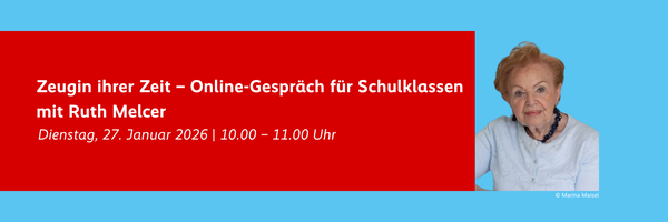 Wir laden Sie und Ihre Schulklassen oder Jugendgruppen zu einem Online-Gespräch mit Ruth Melcer ein.