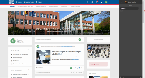 A project group is working on me right now. There are also pilot groups who test my features and make sure I get tested before I go live. In the future, all FES employees worldwide will have access and will be able to use me for collaboration, exchange and information.