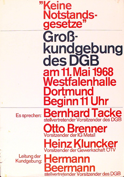 Bild: "Keine Notstandsgesetze" - Werbeplakat für eine Großkundgebung