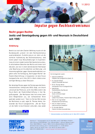 Justiz und Gesetzgebung gegen Alt- und Neunazis in Deutschland seit 1945 ;Dokumentation zur Konferenz am 6. Mai 2013 in Berlin
