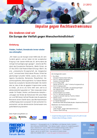 ein Europa der Vielfalt gegen Menschenfeindlichkeit ; Zusammenfassung der Konferenz vom 27.5.2013 in der Friedrich-Ebert-Stiftung in Berlin