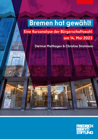 Publikation FES-Wahlanalyse: Bremen hat gewählt. Eine Kurzanalyse der Bürgerschaftswahl am 14. Mai 2023 Bremen hat gewählt Molthagen, Dietmar ; Strotmann, Christine Zur Publikation Am 14. Mai 2023 wurde in Bremen und Bremerhaven die bremische Bürgerschaft gewählt. Eine Kurzanalyse der Friedrich-Ebert-Stiftung zeigt die Hintergründe zu den Wahlergebnissen und geht darauf ein, was diese für die Zukunft des Bundeslandes bedeuten. Diese Kurzanalyse blickt auf das Ergebnis der Bürgerschaftswahl in Bremen und Bremerhaven am 14. Mai 2023, diskutiert Faktoren, die das Ergebnis erklären und nennt die Besonderheiten, die in den Nachwahlanalysen eine Rolle gespielt haben. Der Text basiert unter anderem auf den Aussagen des Politikwissenschaftlers Prof. Dr. Andreas Klee von der Universität Bremen sowie von Reinhold Wetjen, Landesvorsitzender der SPD Bremen, während eines öffentlichen Diskussionsforums der norddeutschen Friedrich-Ebert-Stiftung zwei Tage nach der Wahl. Ein Zusammenschnitt dieses Gesprächs wurde als Folge 72 des Podcasts „Friedrichs Flaschenpost“ veröffentlicht. Der Autor und die Autorin bedanken sich herzlich für die Erlaubnis, Gedanken der beiden Referenten hier weiterverarbeiten zu dürfen. Weitere zentrale Quellen sind die Nachwahlanalysen von Infratest dimap, der Forschungsgruppe Wahlen sowie der anderen politischen Stiftungen (siehe Quellenverzeichnis). Eine gedruckte Fassung dieser Publikation kann kostenfrei bei der norddeutschen Friedrich-Ebert-Stiftung bestellt werden - per Mail an hamburg@fes.de Passend zum Thema: Unsere Podcastfolge zur Wahl.