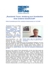 Rückblick Russlands Traum - Anleitung zum Verständnis einer anderen Gesellschaft 13.07.2020 00:00 bis 01.01.1970 01:00 - Online Auf der einen Seite erwartet die Gesellschaft Unterstützung vom Staat im sozialen Bereich. Auf der anderen Seite fordern die Menschen, dass sie selbst über ihr Schicksal bestimmen können. Dazu bedarf es einer Freiheit, die oft genug vor der Freiheit des Anderen nicht haltmacht. Seit Peter dem Großen ist der Staat des größten Landes der Welt in Maßen bereit, diesem Willen des Stärkeren stattzugeben - sofern echte politische Mitbestimmung ausgeschlossen bleibt. Die russische Gesellschaft hat einen alten Traum - den Traum von Freiheit. Sie träumt ihn immer völlig unabhängig von ihren jeweiligen Herrschern. Die große Mehrheit der Bevölkerung ist heute freier als je zuvor, auch wenn es ungerecht im Land zugeht. Doch der äußere Anschein, dass sich die Gesellschaft widerstandslos vom Staat beherrschen lässt, war und ist falsch. Warum, das erklärt "Russlands Traum", ein unlängst erschienener Essay von Reinhard Krumm, dem Leiter des Regionalbüros für Zusammenarbeit und Frieden in Europa der Friedrich-Ebert-Stiftung. Davor leitete er die FES-Büros in Zentralasien und in der Russischen Föderation und berichtete als dpa-Korrespondent aus Riga, sowie als SPIEGEL-Korrespondent aus Moskau Wie so vieles in Russland ist seiner Einschätzung nach auch der russische Traum Widersprüchlich. Auf der einen Seite erwartet die Gesellschaft Unterstützung vom Staat im sozialen Bereich. Auf der anderen Seite fordern die Menschen, dass sie selbst über ihr Schicksal bestimmen können. Dazu bedarf es einer Freiheit, die oft genug vor der Freiheit des Anderen nicht haltmacht. Seit Peter dem Großen ist der Staat des größten Landes der Welt in Maßen bereit, diesem Willen des Stärkeren stattzugeben - sofern echte politische Mitbestimmung ausgeschlossen bleibt. 20_07_13_Einladung_RusslandsTraum.pdf 270 KB 20_07_13_Rueckblick_RusslandsTraum.pdf 244 KB Montag, 13.07.20 Online freie Plätze Russlands Traum - Anleitung zum Verständnis einer anderen Gesellschaft Veranstaltungsnummer: 248666 – als .ics herunterladen Die russische Gesellschaft hat einen alten Traum - den Traum von Freiheit. Sie träumt ihn immer völlig unabhängig von ihren jeweiligen Herrschern. Die große Mehrheit der Bevölkerung ist heute freier als je zuvor, auch wenn es ungerecht im Land zugeht. Doch der äußere Anschein, dass sich die Gesellschaft widerstandslos vom Staat beherrschen lässt, war und ist falsch. Warum, das erklärt "Russlands Traum", ein unlängst erschienener Essay von Reinhard Krumm, dem Leiter des Regionalbüros für Zusammenarbeit und Frieden in Europa der Friedrich-Ebert-Stiftung. Davor leitete er die FES-Büros in Zentralasien und in der Russischen Föderation und berichtete als dpa-Korrespondent aus Riga, sowie als SPIEGEL-Korrespondent aus Moskau Wie so vieles in Russland ist seiner Einschätzung nach auch der russische Traum Widersprüchlich. Auf der einen Seite erwartet die Gesellschaft Unterstützung vom Staat im sozialen Bereich. Auf der anderen Seite fordern die Menschen, dass sie selbst über ihr Schicksal bestimmen können. Dazu bedarf es einer Freiheit, die oft genug vor der Freiheit des Anderen nicht haltmacht. Seit Peter dem Großen ist der Staat des größten Landes der Welt in Maßen bereit, diesem Willen des Stärkeren stattzugeben - sofern echte politische Mitbestimmung ausgeschlossen bleibt. Termin Montag, 13.07.2018:00-19:30 Uhr Teilnahmepauschale keine Veranstaltungsort Online Ansprechpartner_in Stephan Meuser niedersachsen@fes.de Kontaktanschrift Friedrich-Ebert-StiftungLandesbüro NiedersachsenTheaterstrasse 330159 HannoverTel. 0511-35770830 Fax. 0511-35770840