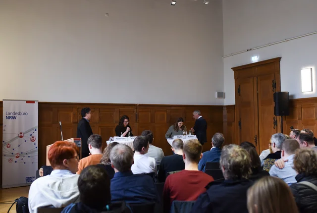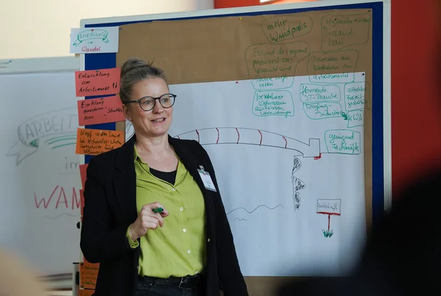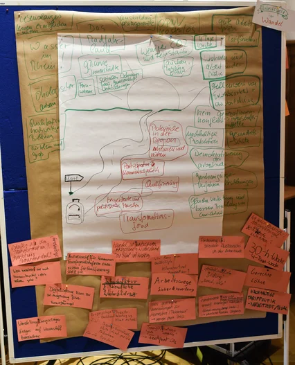 Veranstaltung Rückblick Rückblick | Sozial.Öko.Logisch! Transformationswerkstatt am Niederrhein 25.03.2023 13:29 bis 25.03.2023 13:29 - Moers Terminexport im ICS-Format Die Klimakrise stellt NRW als Industrieland vor immense Herausforderungen. Damit die sozialökologische Transformation gelingen kann, müssen neue Branchen entstehen, während gleichzeitig auch unbeabsichtigte Effekte, wie der Verlust von Arbeitsplätzen, zu bewältigen sind. Wie die Transformationsprozesse am Niederrhein ökologisch, sozial gerecht, aber auch wirtschaftlich sinnvoll gestaltet werden können, wurde von den Teilnehmenden der Transformationswerkstatt in drei Workshops diskutiert. Ergebnisse der Workshops Die Klimakrise stellt NRW als Industrieland vor immense Herausforderungen. Damit die sozialökologische Transformation gelingen kann, müssen neue Branchen entstehen, während gleichzeitig auch unbeabsichtigte Effekte, wie der Verlust von Arbeitsplätzen, zu bewältigen sind. Wie die Transformationsprozesse am Niederrhein ökologisch, sozial gerecht, aber auch wirtschaftlich sinnvoll gestaltet werden können, wurde von den Teilnehmenden der Transformationswerkstatt in drei Workshops diskutiert. Im Fokus standen dabei Fragen rund um die Themen Wandel der Arbeitswelt, Mobilitätswende sowie globale Herausforderungen und regionale Auswirkungen. Die Teilnehmenden präsentierten ihre Handlungsempfehlungen und Visionen einem Fachpublikum aus Politik, Gewerkschaft und Wirtschaft in einem Dragons‘ Den[1]. Zentrale Punkte ihrer Vorträge sowie deren Kommentierung und Einschätzung durch die Expert:innen[2] sind im Folgenden dargestellt. [1] „Dragons‘ Den“ ist eine britische Fernsehsendung, in der Jungunternehmer:innen innerhalb von wenigen Minuten ihre Geschäftsidee potentiellen Investor:innen vorstellen. Diese kommentieren und bewerten die Ideen. Die Sendung entspricht damit dem Prinzip des deutschen Formats „Die Höhle der Löwen“. [2] Holger Benninghoff (Kreishandwerkerschaft Wesel), Elke Buttkereit (Ratsmitglied der Stadt Neukirchen-Vluyn), Jürgen Kaiser (Niederrheinische IHK), Réne Schneider (Mitglied des Landtags NRW), Angelika Wagner (DGB Niederrhein). Workshop #1 Arbeitswelt im Wandel Leitung: Manuela Maschke, freiberuflicher Coach & Autorin In Workshop #1 haben sich die Teilnehmenden mit den zahlreichen Veränderungen der Arbeitswelt befasst. Sie erarbeiteten gemeinsam einen Befund, d.h. den Ist-Zustand, sprachen über die Soll-Situation und machten konkrete Vorschläge, wie dies erreicht werden könnte. Neben dem Fachkräftemangel kritisierten die Teilnehmenden eine unzureichende Infrastruktur für die berufliche Weiterbildung sowie ungerechte Löhne und das Fehlen einer nachhaltigen Tarifpolitik. Zudem seien der soziale Austausch in der Arbeitswelt zu gering und unsichere sowie unzuverlässige Arbeitswege problematisch. Ziel müsse es demnach werden, den Stellenwert der Ausbildung zu steigern, gute Arbeitsplätze mit Tarifbindung zu schaffen und die Arbeitswelt zu demokratisieren, also Teilhabe zu ermöglichen. Zudem sprachen sie sich dafür aus, Wohnen und Arbeiten stärker zusammenzudenken und Arbeitswege zu verkürzen. Die Gruppe schlug deshalb vor, die Qualifizierung, Aus- und Weiterbildung massiv zu stärken. Potenziale in den Regionen müssten erkannt und genutzt und ein Industriestandort stärker mit Wohnungsorten verknüpft werden. Auch die Finanzierung dürfe nicht außer Acht gelassen werden, denn die sozialökologische Transformation brauche eine breit aufgestellte Finanzierung im Milliardenbereich. Die Vision der Teilnehmenden: ein Transformationsfond. Und: Mehr junge Menschen in der Kommunalpolitik, die den Wandel gestalten. Die Ideen der Workshop-Teilnehmenden fanden in der Runde der Dragons großen Anklang. Unterstützt wurden sie unter anderem im Hinblick darauf, dass der Fachkräftemangel das Thema der Zukunft sei. Um dem entgegenzuwirken sei eine gute schulische, Aus- und Weiterbildung der zentrale Baustein. Diese seien mit Forderungen der Arbeitnehmer:innenverbände zu verknüpfen, denn die Bereitschaft zum Ausbilden in den Betrieben sinke. Es brauche außerdem eine Ausbildungsoffensive, mit dem Ziel, dass die Ausbildungsberufe gleichwertig zum Studium anerkannt und entsprechende Löhne gezahlt werden. Eine engere Verknüpfung von Wohnen und Arbeiten wurde von einigen Expert:innen hingegen kritisch hinterfragt: Ökologisch sei es sinnvoll in der Nähe des Arbeitsortes zu leben und könne im Hinblick auf das Zeitmanagement auch positiv zur Work-Life-Balance beitragen. Nicht vergessen sei allerdings, dass Menschen eine Heimat haben, aus der sie nicht wegziehen möchten. Zudem mache auch der knappe Wohnraum in den Städten, der für viele Menschen unbezahlbar ist, Pendeln ebenfalls erforderlich. Außerdem habe sich die Erwerbsbiografie vieler verändert: während früher viele Menschen ein Leben lang beim gleichen Arbeitgeber beschäftigt waren, sei dies heute weniger üblich, sodass ein dauerhafter Lebensmittelpunkt in unmittelbarer Nähe zum Arbeitsplatz noch schwerer zu realisieren sei. Workshop #2 Mobilität und Energie – öffentliche Mitunternehmerschaft Leitung: Alexander Götz, Verband Kommunaler Unternehmen In Workshop #2 lag der Fokus auf der Möglichkeit von Land und Kommunen, sich als Mitunternehmer:innen an Projekten mit öffentlichem Interesse zu beteiligen. Die Teilnehmenden stellten gleich zu Beginn heraus, dass mit öffentlichen Mitteln äußerst sorgsam umzugehen sei und keine schädliche Konkurrenz zu ansässigen Betrieben entstehen dürfe. Mitunternehmerschaft heiße deshalb auch explizit nicht anstelle, sondern gemeinsam im Rahmen einer Partnerschaft zu agieren. Die Gruppen identifizierte verschiedene Projektbereiche: Quartiersbezogene klimaneutrale Energie- und Wärmekonzepte, bei denen die öffentliche Hand vorübergehend unterstützend tätig ist; Leerstandsmanagement und der Innenstadtrevitalisierung, um Prozesse zu beschleunigen bis eine selbsts