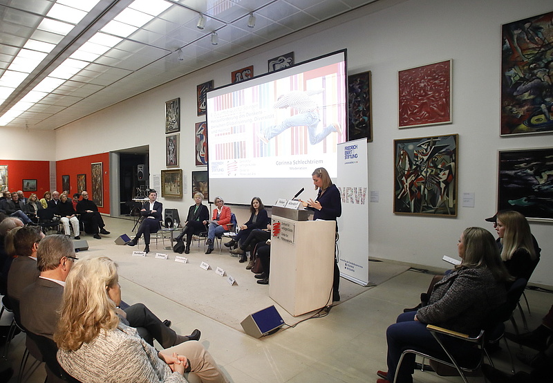 Für die Friedrich-Ebert-Stiftung ging Henrike Allendorf auf das Spannungsfeld zwischen Chancen und Ängsten in einer modernen Welt der Vielfalt ein: „Integration verstehen wir als einen Prozess, der Konflikte konstruktiv löst und Potenziale der Vielfalt zur Entfaltung bringt“, sagte Allendorf. „Ziel einer sozialen und demokratischen Integrationspolitik ist, dass Menschen dort, wo sie leben, an der Gesellschaft teilhaben können.“
