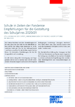 Publikation Bildung Schule in Zeiten der Pandemie: Empfehlungen für das Schuljahr 2020/21 28.05.2020 Friedrich-Ebert-Stiftung Schule in Zeiten der Pandemie - Empfehlungen für die Gestaltung des Schuljahres 2020/21 Maaz, Kai Zur Publikation Stellungnahme der Expert_innenkommission der Friedrich-Ebert-Stiftung Friedrich-Ebert-Stiftung stellt Ergebnisse der Kommission "Das Schuljahr 2020/21" vor Die Corona-Pandemie und ihre Auswirkungen stellen eine Zäsur dar. Das trifft für das öffentliche Leben und für den Alltag vieler Menschen zu. In besonderem Maße gilt dies für den Bildungsbereich - und hier zuvorderst für die Schüler_innen, für ihre Eltern, für Lehrkräfte, Schulleitungen, für die Bildungspolitik und -verwaltung. Sie alle haben mit großer Anstrengung und Engagement auf die sich so radikal und schnell verändernde Situation reagiert und unter schwierigsten Bedingungen kurzfristige Lösungen erarbeitet. Fest steht schon jetzt, dass darüber hinaus aber auch das kommende Schuljahr 2020/21 kein „normales“ werden wird. Die Friedrich-Ebert-Stiftung hat deswegen im Mai 2020 eine Kommission aus Expert_innen eingesetzt. Ihr Auftrag war, schon jetzt den Blick auf das nächste Schuljahr zu richten und konkrete Empfehlungen für verschiedene Handlungsfelder und Herausforderungen zu erarbeiten. Vorsitzender der Kommission ist Prof. Dr. Kai Maaz, Geschäftsführender Direktor des DIPF | Leibniz-Institut für Bildungsforschung und Bildungsinformation. Moderator der Kommission ist Burkhard Jungkamp, Staatssekretär a.D. und Moderator des Netzwerk Bildung der Friedrich-Ebert-Stiftung. 22 Expert_innen aus Bildungswissenschaften, Didaktik, Schulrecht, Medizin, Schulpsychologie, Schulverwaltung und kommunalen Vertretungen, Schulleiter_innen, Lehrkräfte, Schüler_innen und Eltern haben in gemischten Arbeitsgruppen zu verschiedenen Themen Empfehlungen erarbeitet, die in der vorliegenden Stellungnahme gebündelt sind. Schools during the pandemic - Recommendations for organising the school year 2020/21 (English version) 534 KB Ansprechpartner Marion Stichler 030 26935 - 7052 Marion.Stichler(at)fes.de