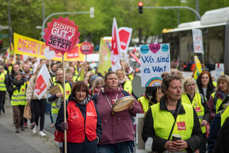 Publikation Arbeit | Bildung, Arbeit, Digitalisierung Für eine Mitbestimmung auf der Höhe der Zeit: mehr Demokratie in der Arbeitswelt 30.04.2025 Ein Impuls zur Stärkung der sozialen Marktwirtschaft durch Mitbestimmung und Tarifbindung Bild: Urheber: Anne Lehmann/FES Betriebliche Mitbestimmung ist ein zentraler Bestandteil der sozialen Marktwirtschaft deutscher Prägung. Eine zeitgemäße Novellierung des Betriebsverfassungsgesetzes ist jedoch angezeigt, denn immer mehr Betriebe werden nicht mitbestimmt. Dabei kann betriebliche Mitbestimmung bei der Stärkung unserer Demokratie eine wichtige Rolle spielen. Auch steht sie mit der seit vielen Jahren zurückgehenden Tarifabdeckung – und damit mit den Einkommen der Beschäftigten – in positiver Wechselwirkung. Mitbestimmung und Tarifbindung bilden damit das Fundament der sozialen Marktwirtschaft, wie sie in Deutschland zum Erfolgsmodell wurde. Wie eine neue Regierung dieses Fundament stärken und weiterentwickeln kann, ist Thema des neu erschienenen FES-Impuls-Papiers. Es basiert auf den Diskussionsinhalten und -ergebnissen einer Gesprächskreisreihe zur Weiterentwicklung der Mitbestimmung, den die Friedrich-Ebert-Stiftung im Zeitraum 2023-2024 unter Einbindung von Vertreter_innen aus Gewerkschaften, Betrieben, Politik, Wissenschaft und weiteren mitbestimmungsrelevanten Akteur_innen organisiert hat. Für eine Mitbestimmung auf der Höhe der Zeit mehr Demokratie in der Arbeitswelt Bonn : Friedrich-Ebert-Stiftung, April 2024 Bode, Leonie ; Javad, Susan Zum Download (PDF) Bild: Urheber: picture-alliance/ZB Donnerstag, 27.04.2023 Digitalisierung Publikation News Gewerkschaften und gute Arbeit Gewerkschaften national Gute Gesellschaft – Soziale Demokratie 2017plus FES impuls | Betriebsräte in Start-ups? Von gestern? Von wegen… Betriebsverfassungsgesetz – wie passt diese Grundlage für betriebliche Mitbestimmung in Deutschland mit der neuen Arbeitswelt der jungen, digital- und tech-affinen Unternehmen zusammen? Bild: Urheber: Anne Lehmann Donnerstag, 04.07.2024 Veranstaltung Arbeit Gewerkschaften und gute Arbeit Gewerkschaften national Rückschau der Tagung "Mehr Demokratie in der Arbeitswelt wagen! Die Mitbestimmung auf die Höhe der Zeit bringen" vom 10. Juni 2024 Auf der Veranstaltung vom 10. Juni 2024 wurde in der Friedrich-Ebert-Stiftung Berlin darüber diskutiert, wie das Projekt einer fortschreitenden Demokratisierung der Gesellschaft und damit auch die Arbeitswelt weiterentwickelt werden kann. Bild: Urheber: picture alliance / Rupert Oberhäuser | Rupert Oberhäuser Dienstag, 29.04.2025 Publikation Bildung, Arbeit, Digitalisierung Die sozial-ökologische Transformation gestalten: Handlungsmöglichkeiten einer sozial gerechten Arbeitsmarktpolitik Sozialpartnerschaft, Tarifbindung, Qualifizierung: Wie Arbeitsmarktpolitik soziale Sicherheit im Wandel gewährleisten kann Ansprechpartnerin Susan Javad 030 26935-8313 Susan.Javad(at)fes.de