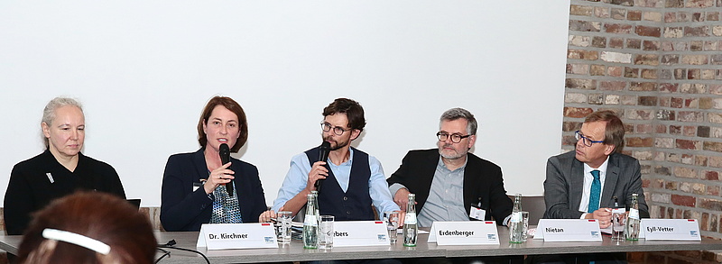 Neben Gebers und Kirchner nahmen der Leiter der Tagebauentwicklung bei RWE Power, Michael Eyll-Vetter, und der SPD-Bundestagsabgeordnete für den Kreis Düren, Dietmar Nietan, an der Diskussion teil. Moderiert wurde die Runde vom WDR-Journalisten Ralph Erdenberger, der nach den aus seiner Sicht dramatischen Auswirkungen des Kohleausstiegs für die Region fragte. „Das Arbeitsministerium bringt gute Reformen auf den Weg. Es muss aber auch in den anderen Bundesministerien etwas passieren“, sagte Nietan. Für ihn sei nicht entscheidend, ob 40 oder nur 35 Milliarden Euro in den Strukturwandel investiert würden. „Meine große Sorge ist, dass die Fördergelder nicht dort ankommen, wo sie ankommen sollen.“