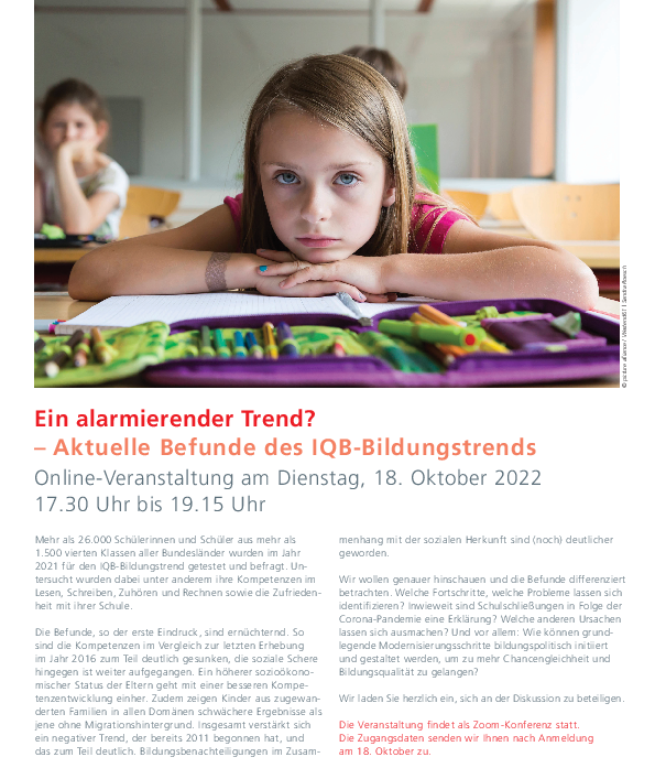 Wir wollen genauer hinschauen und die Befunde differenziert betrachten. Welche Fortschritte, welche Probleme lassen sich identifizieren? Inwieweit sind Schulschließungen in Folge der Corona-Pandemie eine Erklärung? Welche anderen Ursachen lassen sich ausmachen? Und vor allem: Wie können grundlegende Modernisierungsschritte bildungspolitisch initiiert und gestaltet werden, um zu mehr Chancengleichheit und Bildungsqualität zu gelangen?