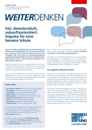 Die Friedrich-Ebert-Stiftung lädt Bildungsexpert_innen aus Wissenschaft, Politik, Verwaltung, Bildungspraxis und Zivilgesellschaft ein.