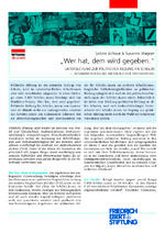 Publikation News Bildungspolitik | Schulpolitik Veröffentlichung: „Wer hat, dem wird gegeben?!" 04.06.2019 Marion Stichler "Wer hat, dem wird gegeben." Achour, Sabine ; Wagner, Susanne Zur Publikation Untersuchung zur politischen Bildung an Schulen — Zusammenfassung wesentlicher Erkenntnisse Politische Bildung ist ein zentraler Auftrag von Schule, wird in unterschiedlichen Schulformen aber sehr verschieden umgesetzt. In einer Umfrage unter 3.400 Schüler_innen bestätigt sich das Matthäus-Prinzip „Wer hat, dem wird gegeben“: Politische Bildung für Schüler_innen von Gymnasien ist oftmals nicht nur umfangreicher, sondern die Schüler_innen am Gymnasium schätzen ihn als abwechslungsreicher und partizipativer ein als die Schüler_innen an anderen Schulformen. Ungleiche Teilhabemöglichkeiten an politischer Bildung spiegeln sich auch in den politischen Einstellungen der Schüler_innen wider. Erforderlich ist daher eine Stärkung politischer Bildung an allen Schulen, weil sich herkunftsbedingte Unterschiede der Schüler_innen im Zugang zur politischen Bildung nicht durch die Wahl der Schulform verstärken dürfen. Ansprechpartner Marion Stichler 030 26935 - 7052 Marion.Stichler(at)fes.de