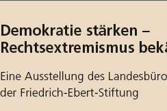 Die Ausstellung "Demokratie stärken - Rechtsextremismus bekämpfen" des Landesbüros Niedersachsen zeigt die Gefahren auf, die vom Rechtsextremismus als Bedrohung für Demokratie und Menschenwürde ausgehen. Sie stellt die Grundlagen für rechtsextremes Verhalten und Einstellungen dar und zeigt, welche Formen rechtsextreme Weltbilder und Argumentationsweisen annehmen können.