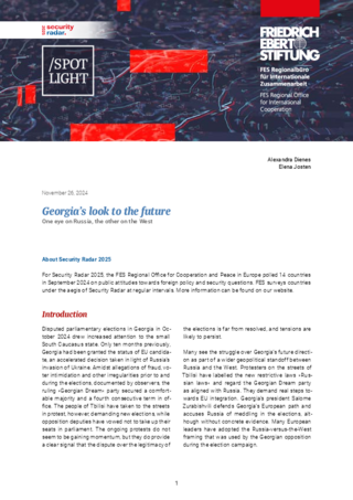 Frieden und Sicherheit Georgien im Fokus: Europas Verantwortung in einer unsicheren Nachbarschaft 12.12.2024 Christos Katsioulis Georgia's look to the future Dienes, Alexandra ; Josten, Elena Zur Publikation Die Lage in Georgien ist ein Weckruf für Europa: Der Sicherheitsradar 2025 zeigt, dass Europas Verantwortung wächst. Es gilt, Demokratie zu fördern, autokratischen Einflüssen entgegenzutreten und Georgien langfristig als Partner einzubinden. Nur eine entschlossene Politik kann Stabilität in der Region sichern. Bild: Urheber: picture alliance / Anadolu | Mirian Meladze Dienstag, 06.08.2024 Politik für Europa Könnte sich ein ‚Agentengesetz‘ wie in Georgien auch in anderen Ländern durchsetzen? Georgiens Gesetz über „ausländische Agenten“ ist in Teilen wortgleich mit dem russischen Gesetz von 2012, welches die Arbeit zivilgesellschaftlicher Organisationen größtenteils erfolgreich unterbindet. Könnte ein solches Gesetz auch in anderen... Ansprechpartnerin Bild: Urheber: FES Lisa Gürth 030 269 35-7716 Lisa.Guerth(at)fes.de Bild: Urheber: FES Mit Blick auf die zunehmenden Spannungen in Georgien und dessen geopolitische Bedeutung steht Europa vor einer zentralen sicherheitspolitischen Herausforderung. Der Sicherheitsradar 2025 unseres Wiener Regionalbüros liefert aktuelle Daten aus einer repräsentativen Befragung der georgischen Bevölkerung und ihren Einstellungen zur Zukunft ihres Landes zwischen Russland und der EU. Ein fragiler Zustand zwischen Annäherung und Autokratie Die Situation in Georgien bleibt ambivalent. Einerseits gibt es deutliche Signale einer Annäherung an europäische Werte und Institutionen, andererseits wächst der Einfluss autokratischer Kräfte im Land. Die Umfrageergebnisse zeigen, dass die europäische Öffentlichkeit eine klare Haltung erwartet: eine Politik, die demokratische Entwicklungen in Georgien unterstützt, aber auch konsequent bleibt, wenn es um die Verteidigung grundlegender Werte geht. Stabilität im Südkaukasus: Europas Rolle als Garant Der geopolitische Kontext erfordert von Europa eine Führungsrolle bei der Stabilisierung Georgiens. Dies bedeutet nicht nur politische Unterstützung, sondern auch Investitionen in wirtschaftliche Entwicklung und Sicherheitsstrukturen. Eine Schwächung der georgischen Demokratie könnte weitreichende Folgen für die gesamte Region haben – und damit auch für die europäische Sicherheit. Handlungsfelder für Europa Aus den Erkenntnissen des Sicherheitsradars lassen sich drei prioritäre Handlungsfelder ableiten: Demokratische Resilienz fördern: Europa muss gezielt Maßnahmen ergreifen, um die Zivilgesellschaft und demokratische Institutionen in Georgien zu stärken. Dies erfordert diplomatische Bemühungen, aber auch finanzielle Unterstützung. Klare Strategien gegenüber autokratischen Einflüssen: Der wachsende Einfluss Russlands und anderer autokratischer Akteure in Georgien verlangt von Europa eine klare Haltung und entschlossene Gegenmaßnahmen. Eine nachhaltige Nachbarschaftspolitik: Europa muss Georgien als Partner langfristig einbinden – wirtschaftlich, politisch und sicherheitspolitisch. Nur so kann eine stabile und demokratische Entwicklung gesichert werden. Fazit: Europas Verantwortung in der Nachbarschaft Die Entwicklungen in Georgien zeigen, wie wichtig eine aktive und eigenständige europäische Außen- und Sicherheitspolitik ist. Europa muss seine Rolle als Garant für Stabilität und Demokratie in seiner Nachbarschaft wahrnehmen – nicht nur, um autokratischen Einflüssen entgegenzuwirken, sondern auch, um seine Glaubwürdigkeit als Partner zu wahren.