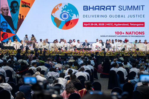 Podiumsgäste und Teilnehmende im Publikum beim Bharat Summit der Progressive Alliance in Hyderabad.