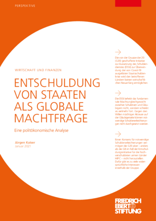 Publikation Internationale Gemeinschaft und Zivilgesellschaft Fenster zur Entschuldung 27.01.2021 Elisabeth Bollrich Entschuldung von Staaten als globale Machtfrage Kaiser, Jürgen Zur Publikation Die Corona-Pandemie verursacht weltweit hohe Staatsschulden. Vorschläge zum politischen Umgang damit bietet Jürgen Kaiser in einer neuen Studie der FES. Bild: Urheber: Ehud Neuhaus Donnerstag, 23.04.2020 Publikation Interview Finanzen Die globale (Staats)-Schuldenkrise vor Corona Ein Interview mit Jürgen Kaiser, politischer Koordinator von erlassjahr.de und Autor von „Die globale (Staats)-Schuldenkrise vor Corona“ Ansprechpartnerin Bild: Urheber: bundesfoto/FES/Kurc Elisabeth Bollrich +49 30 26935-7514 Elisabeth.Bollrich(at)fes.de Bild: Urheber: Elisabeth Bollrich Die globale Verschuldung erreichte 2020 durch die Pandemie-bedingte Rezession und die hohen Ausgaben einen Rekordwert. Das Institute for International Finance (IIF) warnte sogar vor dem „Angriff eines Schulden-Tsunamis“. Die Geschwindigkeit, mit der weltweit immer größere Schuldenberge angehäuft werden, war jedoch schon vor Corona immens (Artikel "Die globale Staatsschuldenkrise vor Corona). Diese Entwicklung hat sich seit dem Ausbruch der Pandemie beschleunigt. Viele Länder des Globalen Südens müssen zusätzlich hohe Kredite aufnehmen und sich angesichts drohender humanitärer Krisen entscheiden: Entweder sie leisten Schuldendienst gegenüber ihren Gläubigern oder sie finanzieren Maßnahmen zur Bekämpfung des Coronavirus. Staatsschulden unterscheiden sich grundlegend von privaten Schulden. Die beschriebene Situation wirft beispielsweise die Frage auf, warum Staaten ihre Schulden zurückzahlen. Eine übliche Erklärung ist, dass sie auf den internationalen Finanzmärkten ihren (guten) Ruf verteidigen müssen, um in Zukunft (mehr) Kredite aufnehmen oder Investitionen anziehen zu können. Ein Zahlungsverzug sei kostspielig, der säumige Staat verliere den Zugang zu internationalen Kreditmärkten. Diese gängigen Argumentationsmuster überdenkt Jürgen Kaiser mit seiner neuen Studie „Entschuldung von Staaten als globale Machtfrage“. Er fragt, welche anderen politischen Erwägungen spielen zwischen Gläubigern und Schuldnern eine Rolle? Und wie ließe sich ein politischer Prozess gestalten, der im Kern anerkennt, dass die globale Corona-Pandemie etwas Einmaliges ist. Manche Länder, die dem Risiko eines Zahlungsausfalls ausgesetzt sind, erhalten aktuell umfangreiche humanitäre Hilfe. Aber auch einige Länder mit mittlerem Einkommen, die mancherorts besonders hart von der Pandemie betroffen sind, befinden sich in einem akuten „Schuldennotstand“. Bisher konnten sich die G20 und die internationalen Finanzinstitutionen nicht auf eine geforderte großzügige Antwort für besonders von der sich ausbreitenden Schuldenkrise betroffene Länder einigen. Die Entschuldung von Staaten ist ein komplexer politischer Prozess, an dem viele, zum Teil gegensätzliche Interessengruppen beteiligt sind. Diese Uneinigkeit, sowie Macht und Positionen wichtiger Akteure rund um die globale Schuldenarchitektur beleuchtet Jürgen Kaiser mit seiner neuen Studie. Erst durch eine genaue Analyse der politischen Ökonomie können letztendlich effektivere Strategien und Reformen für den Umgang mit den politischen Herausforderungen der globalen Schuldenkrise erarbeitet werden. Der Autor legt hier Schritte für eine Systemveränderung vor, die internationale Staatsverschuldung im engeren und die internationale Finanzarchitektur im weiteren Sinn in Einklang bringt mit den Pflichten ärmerer Länder ihren Bürger*innen gegenüber. Bild: Urheber: erlassjahr.de Jürgen Kaiser ist Mitbegründer und Koordinator von erlassjahr.de. Das Bündnis setzt sich für faire internationale Standards bei der Kreditvergabe an Staaten und für die Entschuldung, insbesondere von Ländern des Globalen Südens, ein.