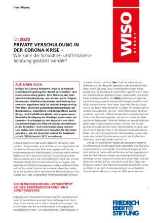 Publikation News Soziales | Wirtschaft, Finanzen, Ökologie, Soziales | Wirtschaft | Finanzen Private Verschuldung in der Corona-Krise - Wie kann die Schuldner- und Insolvenzberatung gestärkt werden? Private Verschuldung in der Corona-Krise Moers, Ines Zur Publikation Die Corona-Krise verschärft voraussichtlich die private Überschuldung. Daher sollte die Soziale Schuldnerberatung gestärkt werden. Schon zuvor waren in Deutschland fast sieben Millionen Menschen überschuldet. In Folge der Corona-Pandemie wird der Bedarf an Schuldner- und Insolvenzberatung vermutlich deutlich steigen, denn Einkommensverluste aufgrund von Arbeitslosigkeit, Kurzarbeit oder Geschäftsschließungen werden die private Überschuldung aller Voraussicht nach verschärfen. Von Überschuldung ist zu sprechen, wenn die eingegangenen Kreditverpflichtungen dauerhaft nicht (mehr) erfüllt werden können. Eine länger dauernde Überschuldung hat für die betroffenen Personen meist gravierende Auswirkungen. Krankheit, der Verlust sozialer Kontakte, psychische Belastungen und fehlende Teilhabe am gesellschaftlichen Leben bis hin zur Obdachlosigkeit drohen. Eine Stärkung der Sozialen Schuldnerberatung, wie sie von freien Trägern, Kommunen, Wohlfahrtsverbänden und Verbraucherzentralen angeboten wird, ist deshalb dringend nötig. Die Schuldnerberatung macht es sich zur Aufgabe, die wirtschaftliche Existenz der Schuldner_innen sowie ihrer Angehörigen zu sichern und durch Lerneffekte und Präventionsangebote einer erneuten Überschuldung vorzubeugen. In manchen Fällen ist auch eine Insolvenzberatung erforderlich. Schuldner- und Insolvenzberatung wirken nicht nur armutsvermeidend, sie haben auch einen beträchtlichen ökonomischen Nutzen, z. B. durch die finanzielle Entlastung von Kommunen, Justiz, Sozialversicherungen und Gläubiger_innen. Schon jetzt erreichen die Beratungsstellen allerdings nur einen Bruchteil der Betroffenen. Dennoch gibt es bislang keine ministerielle Zuständigkeit auf Bundesebene. Stattdessen verweisen die Bundesministerien regelmäßig auf die Zuständigkeiten von Ländern und Kommunen. Hintergrund ist, dass die Kommunen die Schuldnerberatung finanzieren und die Länder die Anerkennung der Beratungsstellen und die Finanzierung der Insolvenzberatung regeln. Die künstliche Trennung von Schuldner- und Insolvenzberatung sowie die fehlende Bundeszuständigkeit führen allerdings zu einem völlig uneinheitlichen Flickenteppich bei den Finanzierungsbestimmungen. Ein stärkeres Engagement des Bundes ist daher dringend erforderlich. Der Bund könnte nicht nur die Finanzierung stabilisieren, er sollte auch die Erarbeitung einheitlicher Ausbildungsstandards in diesem Bereich fördern, die Qualifizierung geeigneter Fachkräfte voranbringen und die Beratungsqualität auf einem bundesweit einheitlichen Standard sicherstellen. Auch eine angemessene finanzielle Beteiligung der Gläubiger_innen an den Kosten der Schuldner- und Insolvenzberatung könnte bundesgesetzlich geregelt werden. Ansprechpartner in der FES: Dr. Robert Philipps 0228 883-8316 Robert.Philipps(at)fes.de