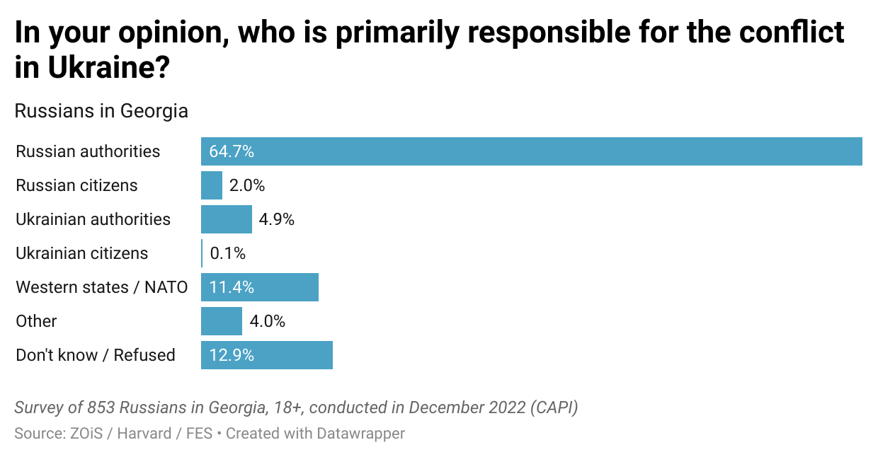 Flucht, Migration, Integration | Fluchtursachen Wie Russische Migrant:innen in Armenien und Georgien den Krieg sehen Russians in the South Caucasus Krawatzek, Félix ; DeSisto, Isabelle ; Soroka, George Zur Publikation Ein neuer ZOiS Report, unterstützt von der Friedrich-Ebert-Stiftung, des Harvard Ukrainian Research Institute (HURI), des Davis Centre for Russian and Eurasian Studies in Harvard und des Minda de Gunzburg Centre for European Studies in Harvard, präsentiert die Ergebnisse einer Umfrage unter russischen Migrant:innen in Georgien und Armenien. Bild: Urheber: Reuters Freitag, 16.09.2022 Integrationspolitik Wie wir ukrainische Flüchtlinge aufnehmen sollten Europa erlebt gerade die größte Flüchtlingsbewegung seit dem Zweiten Weltkrieg. Wir sollten die Lektionen von Schwedens Erfahrungen mit Integration beherzigen. Bild: Urheber: Artur Widak/NurPhoto Montag, 05.12.2022 Integrationspolitik Auch ukrainische Geflüchtete verdienen menschenwürdige Arbeit Befürworter der Plattformökonomie nutzen das Leid ukrainischer Geflüchteter, um Regulierungen abzuwehren. Aber alle Arbeitnehmer_innen verdienen eine menschenwürdige Arbeit! Bild: Urheber: Carina Crenshaw Dienstag, 04.04.2023 Flucht, Migration, Integration Fluchtursachen Integrationspolitik Flüchtlingspolitik Politik für Europa Flüchtlingsaufnahme geht auch solidarisch in Europa Was ist besonders am Status für Geflüchtete aus der Ukraine und was kann Deutschland hinsichtlich der Aufnahme, Unterbringung und Arbeitsmarktzugangs von anderen EU Staaten lernen? Darüber schreibt Dietrich Thränhardt in der FES Studie: Mit offenen... Ansprechpartner Bild: Urheber: FES Lisa Gürth 030 269 35-7716 Lisa.Guerth(at)fes.de Bild: Urheber: REUTERS/Irakli Gedenidze Ein neuer ZOiS Report präsentiert die Ergebnisse einer Umfrage unter russischen Migrant*innen in Georgien und Armenien. Eine überwältigende Mehrheit der Befragten sprach sich gegen Wladimir Putin aus und schrieb die Verantwortung für den Krieg gegen die Ukraine Russland zu. Die Daten weisen darauf hin, dass die Befragten bereits vor der Ausreise politisch aktiver waren als die russische Bevölkerung insgesamt. Im Jahr 2022, als Moskau den Angriffskrieg auf die gesamte Ukraine begann, verließ eine große Zahl vor allem junger Menschen Russland. Aufgrund der visumsfreien Einreise und der geografischen Nähe gehörten Armenien und Georgien zu den beliebtesten Zielen. Um mehr über die russischen Migrant*innen und ihre Einstellungen zu erfahren, führte ein Team von Forschenden des Zentrums für Osteuropa- und internationale Studien (ZOiS), der Princeton University und der Harvard University Ende 2022 in diesen Ländern eine persönliche Umfrage unter insgesamt mehr als 1600 Personen durch. Mehr als 90 % von ihnen waren nach dem Januar 2022 eingereist, mit Spitzen im März (Armenien) und September (Armenien und Georgien) (Abb. 1). Obwohl es sich nicht um eine reine Zufalls-Stichprobe handelt und sie daher nicht die Erfahrungen und Einstellungen der Gesamtheit aller russischen Neuankömmlinge in Armenien und Georgien widerspiegelt, lassen die Ergebnisse wichtige Muster sowohl innerhalb des jeweiligen Landes als auch länderübergreifend erkennen. Die Befragten sind jünger als die russische Gesamtbevölkerung und insgesamt besser ausgebildet als die Russ*innen ihrer Altersgruppe. Über 80 % kommen aus Großstädten mit mehr als einer Million Einwohner*innen. In Übereinstimmung mit zahlreichen Medienberichten war ein beträchtlicher Anteil der Befragten in beiden Ländern im IT-Bereich beschäftigt: 27 % in Georgien und 37 % in Armenien. Die Umfrage zeigte auch, dass die Befragten in Georgien und Armenien im Vergleich zur russischen Gesamtbevölkerung wesentlich liberalere soziale Einstellungen haben. Negative Einstellungen zu russischen Institutionen Die Befragten ordnen die Verantwortung für den Krieg eindeutig den russischen Behörden zu. In Armenien geben drei Viertel der Befragten russischen Behörden die Schuld, in Georgien liegt die Anzahl bei zwei Dritteln (Abb. 2). Die Befragten in Georgien verfolgen den weiteren Verlauf des Krieges genauer: Mehr als die Hälfte gab an, den Krieg „sehr genau“ zu verfolgen, verglichen mit etwas mehr als 40 % in Armenien. Die Ansichten der Migrant*innen zu russischen Institutionen sind ausgesprochen negativ, insbesondere bei den Befragten in Armenien. Im Gegensatz dazu bewerteten 66% der Befragten in Armenien und 46% in Georgien den ukrainischen Präsidenten Wolodymyr Selenskyj positiv. Ihre Einstellungen zur NATO, der EU und westlichen Medien sind ebenfalls größtenteils positiv, allerdings wich ein beträchtlicher Anteil der Befragten dieser Frage aus und entschied sich, keine Bewertung abzugeben. Armenien: Befragte jünger und politischer Die in Armenien befragten Russ*innen waren vor ihrer Auswanderung politisch aktiver, sowohl in Bezug auf Nachrichtenkonsum als auch auf die Teilnahme an politischen oder zivilgesellschaftlichen Aktivitäten wie ehrenamtliches Engagement, Spenden an Nichtregierungsorganisationen oder das Organisieren von Kulturveranstaltungen. Befragte in Armenien berichteten außerdem häufiger, an Protestveranstaltungen gegen den Krieg in der Ukraine teilgenommen zu haben, während sie noch in Russland lebten (25 % in Armenien gegenüber 11 % in Georgien, Abb. 3). Allerdings engagieren sich die Befragten in beiden Ländern nur selten ehrenamtlich oder nehmen an Protesten teil, die nicht mit dem Krieg in der Ukraine zusammenhängen. Die politischen Konsequenzen der jüngsten Abwanderung aus Russland bleiben ungewiss. ZOiS-Forscher Félix Krawatzek merkt an: „Einerseits hat das russische Regime einige seiner lautstärksten Kritiker*innen exiliert, andererseits könnten das vergleichsweise liberale Umfeld in den Gastländern den Exilant*innen die Möglichkeit verschaffen, sich untereinander zu vernetzen und das Putin-Regime vor eine Herausforderung zu stellen.“ Das Projekt wurde mit finanzieller Unterst
