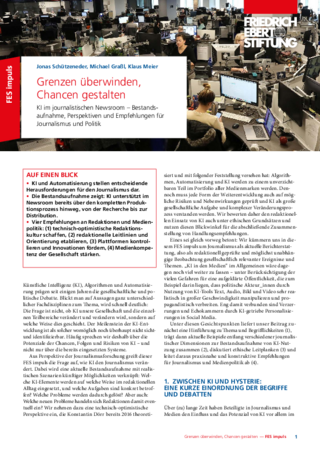 Vor diesem Hintergrund leistet die FES-Medienpolitik mit ihren Studien, Publikationen und Veranstaltungen Beiträge zur Verständigung über die weitere Entwicklung des Mediensystems in seiner inhaltlichen und technischen Vielfalt. Daran sind Medienverantwortliche, Beschäftigte in der Medienwirtschaft, Politiker:innen, zivilgesellschaftliche Akteuren und Wissenschaftler:innen beteiligt.