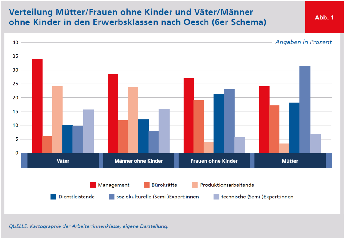 Publikation Eine Frage des Geschlechts? Arbeitsbedingungen aus der Perspektive von Männern und Frauen Eine Frage des Geschlechts? Peters, Eileen Zur Publikation Dr. Eileen Peters geht in dieser Analyse der Frage nach, inwiefern sich die Wahrnehmung von Erwerbsarbeit, den Arbeitsbelastungen und Arbeitsmerkmalen zwischen Männern und Frauen und Personen mit Kindern und ohne unterscheidet. Bild: Urheber: Anne Lehmann Die Studie ist Teil des ProjektsKartographie der Arbeiter:innenklasse, mit dem wir eine Vermessung der (erwerbs-)arbeitenden Gesellschaft vornehmen. Die Arbeitswelt befindet sich derzeit in einem großen Wandel. Digitalisierung, Fachkräftemangel und Vereinbarkeit von Beruf und Familie treiben diesen stetig voran, um nur ein paar der gegenwärtigen Herausforderungen zu nennen. Das Alleinverdienermodell in Familien scheint zunehmend ausgedient zu haben, Pflege und Sorgearbeit müssen daher mit Erwerbsarbeit in Einklang gebracht werden. Doch noch immer arbeiten mehr Frauen in Teilzeit als Männer, sie übernehmen oftmals auch den größeren Anteil an Sorgearbeit und Pflege in den Familien. Wie wirken sich diese Veränderungen und Anforderungen auf die Wahrnehmung der Arbeitsbedingungen bei Frauen und Männern aus? Die vorliegende Studie zeigt, dass vor allem Frauen mit Kindern die Vereinbarkeit von Beruf und Familie als äußerst wichtiges Arbeitsmerkmal erachten. Gleichzeitig bewerten vor allem Frauen ohne Kinder ihre Arbeitsbelastungen als hoch. Der Beitrag ergänzt die aktuelle Debatte um eine moderne Arbeitswelt, die den geänderten Bedürfnissen der Arbeitnehmer:innen gerecht wird. Besonders in Zeiten des Arbeits- und Fachkräftemangels ist dies ein dringender Appell. Ausgewählte Ergebnisse der Studie präsentieren wir auf dieser Seite, die gesamte Studie ist hier kostenfrei abrufbar. Berufsklassen nach Geschlecht Arbeitsbedingungen unterscheiden sich stark nach Branchen, daher ist beim Blick auf die Geschlechterperspektive auch die Verteilung von Männern und Frauen in den Erwerbsklassen aufschlussreich.In der zu Grunde liegenden Studie „Kartographie der Arbeiterklasse“ und dem hier verwendeten Datensample finden sich unter den Befragten insgesamt 18 Prozent Väter, 34 Prozent Männer ohne Kinder unter 18 Jahren im Haushalt, 33 Prozent Frauen ohne Kinder unter 18 Jahren im Haushalt und 15 Prozent Mütter. Bild: Urheber: FES Aufgeschlüsselt nach dem Erwerbsklassenmodell nach Oesch (6er Schema) zeigt sich, dass die weiblichen Befragten vor allem in den Erwerbsklassen der Dienstleistenden und der soziokulturellen (Semi-)Expert:innen tätig sind. Dabei fällt auf, dass Mütter in hohem Maße im Bereich der soziokulturellen (Semi-)Expert:innen berufstätig sind. Die männlichen Befragten sind insbesondere in der Produktion und als technische (Semi-)Experten vertreten, wobei es kaum Unterschiede zwischen Vätern und Männern ohne Kinder gibt. Der Anteil im Management ist bei allen Gruppen am höchsten, was mit der Systematik der Erwerbsklassen nach Oesch im 6er Schema zu erklären ist: Hier werden neben der Erwerbsklasse des Managements die der freien Berufe und Unternehmer:innen und die Erwerbsklasse der Kleingewerbetreibenden und Soloselbstständigen in einer Gruppe zusammengefasst. Begriffsdefinitionen Die Studie verwendet die Begriffe Mütter/ Väter für Personen, die zum Zeitpunkt der Befragung angeben, Sorgearbeit im eigenen Haushalt gegenüber minderjährigen Kindern zu erfüllen. Frauen/ Männer ohne Kinder bezeichnen solche Befragten, die angeben, dass derzeit keine minderjährigen Kinder im eigenen Haushalt leben. Ein Gegenstand der Analyse ist die Wahrnehmung der eigenen Arbeitsbedingungen vor dem Hintergrund der Vereinbarkeit von Beruf und Familie. Hier spielt die Situation im Alltag und im Haushalt eine bedeutende Rolle. Der Leserlichkeit halber werden daher die genannten vereinfachten Begriffe verwendet, auch wenn natürlich Eltern, deren Kinder nicht (mehr) im eigenen Haushalt leben, weiter Eltern bleiben. Frauen ohne Kinder berichten am häufigsten von hoher mentaler Belastung Im Mittelpunkt der Analyse steht, wie Frauen und Männer mit und ohne Kinder die Arbeitsbedingungen und Arbeitsmerkmale ihrer Erwerbsarbeit wahrnehmen. Dabei geben vor allem Frauen ohne Kinder an, häufig an die Grenzen ihrer mentalen Belastbarkeit zu kommen, 15 Prozent von ihnen stimmen dieser Aussage „voll und ganz“ zu. Im Gegensatz hierzu trifft dies nur auf 9 Prozent der Väter und Männer ohne Kinder sowie 12 Prozent der Mütter zu. Sowohl Frauen ohne Kinder als auch Mütter, die hohe mentale Belastungen verspüren, sind am häufigsten als soziokulturelle (Semi-)Expert:innen tätig, und hiervon ist die Mehrheit im Gesundheits- und Sozialwesen beschäftigt. Vor dem Hintergrund, dass Beschäftigte in Kitas und in der Altenpflege im Jahr 2023 die höchste Anzahl an Krankentagen aufgrund von psychischen Erkrankungen vorwiesen, erscheinen die hohen mentalen Belastungen in diesem Bereich wenig überraschend. Befragt nach dem Ausmaß der körperlichen Belastung geben Frauen ohne Kinder am häufigsten (13 Prozent) an, oft an die Grenzen ihrer körperlichen Belastbarkeit zu kommen, am wenigsten fühlen sich Väter körperlich belastet. Wie lässt sich erklären, dass Frauen ohne Kinder höhere körperliche Belastungen haben als Mütter, die genauso häufig als soziokulturelle (Semi-)Expertinnen tätig sind? Mütter verbringen weniger Zeit auf der Arbeit als Frauen ohne Kinder und sind somit den belastenden Arbeitsbedingungen weniger ausgesetzt. Weiterhin könnte vermutet werden, dass Frauen ohne Sorgeverantwortung eher Überstunden machen können, die gerade in Zeiten starken Arbeits- und Fachkräftemangels anfallen. Hohen Zeitdruck bei der Erwerbsarbeit verspüren vor allem Mütter (18 Prozent), gefolgt von Vätern und Männern ohne Kinder (14 Prozent) und Frauen ohne Kinder (16 Prozent). Der Anteil der Befragten insgesamt, die der Aussage „Ich fühle mich bei der Arbeit oft gehet