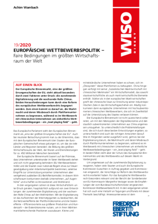 Publikation News Presseeinladung Wirtschaft, Finanzen, Ökologie, Soziales | Wirtschaft Europäische Wettbewerbspolitik. Faire Bedingungen im größten Wirtschaftsraum der Welt Europäische Wettbewerbspolitik Wambach, Achim Zur Publikation Der faire Wettbewerb im europäischen Binnenmarkt ist gefährdet. Plattformunternehmen werden immer marktmächtiger, chinesische Unternehmen bekommen unfaire Staatshilfen. Der europäische Binnenmarkt ist eine der wichtigsten Errungenschaften der europäischen Staaten. Zurzeit steht er jedoch unter Druck: durch die wachsende Marktmacht von Plattformunternehmen im Zuge der Digitalisierung und durch staatlich subventionierte chinesische Unternehmen. Beides untergräbt den fairen Wettbewerb, weshalb eine Reform des europäischen Wettbewerbsrechts unabdingbar ist. Die Bundesregierung sollte diese Reform in ihrer Ratspräsidentschaft vorantreiben. Plattformunternehmen wie Microsoft nutzen Ihre Netzwerk- und Skaleneffekte, um Produkte aus einer Hand bieten zu können. Dies kann teilweise nützlich für Verbraucher_innen sein, da beispielsweise verschiedene Anwendungen ohne größeren Aufwand miteinander harmonieren können. Aus wettbewerblicher Sicht ist das jedoch problematisch, da die Unternehmen immer unangreifbarer werden. Kleinen und mittelständischen Unternehmen bleibt kaum eine Möglichkeit in den Wettbewerb mit den großen Anbietern zu treten. Bislang sind kartellbehördliche Interventionen zu zeit- und ressourcenintensiv, um eingreifen zu können, bevor Mitbewerber_innen verdrängt werden. Aus diesem Grund plant die Europäische Kommission eine ex-ante-Regulierung digitaler Plattformen. Durch klare Regeln für Plattformen soll der Wettbewerb dauerhaft gestärkt werden, was richtig ist. Auf der anderen Seite stellt China als kaufkraftbereinigt größte Volkswirtschaft den Binnenmarkt durch staatliche Subventionen seiner Unternehmen auf die Probe. Aus diesen entstehen Wettbewerbsvorteile gegenüber den europäischen Unternehmen, welche mit dem aktuellen Instrumentarium nur schwer ausgeglichen werden können. Daher sehen auch die Europäische Kommission und die Monopolkommission Reformbedarf im Wettbewerbsrecht. Europa braucht Instrumente, um drittstaatliche Subventionen prüfen zu können oder diese mit den mitgliedstaatlichen Beihilfen gleichzustellen. Wichtiger noch scheint jedoch der Abschluss eines EU-China-Investitionsabkommens, welches um Vereinbarungen für die Vergabe von Subventionen erweitert werden sollte. Ansprechpartner in der FES: Dr. Robert Philipps Donnerstag, 30.07.2020 Publikation Soziales News Wirtschaft Finanzen Private Verschuldung in der Corona-Krise - Wie kann die Schuldner- und Insolvenzberatung gestärkt werden? Die Corona-Krise verschärft voraussichtlich die private Überschuldung. Daher sollte die Soziale Schuldnerberatung gestärkt werden.