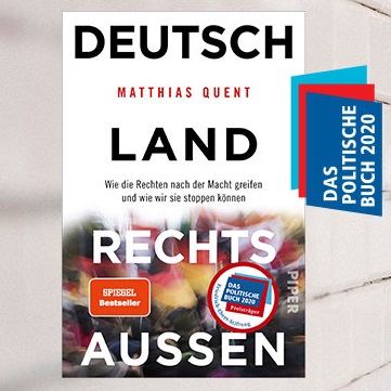 'Deutschland rechts außen - Wie die Rechten nach der Macht greifen und wie wir sie stoppen können.`Mit diesem Buch erhielt Dr. Matthias Quent im September 2020 den Preis der Friedrich-Ebert-Stiftung "Das politische Buch". In einer scharfen und schlüssigen Analyse erklärt der Rechtsextremismusforscher, mit welchen Mechanismen und Strategien Rechtsextremist_innen die Demokratie attackieren. Er kommentiert die Entfesselung deren Ideologie und zeigt, was Politik und Zivilgesellschaft besser machen können, um der Gefahr eines weiteren Rechtsrucks der Gesellschaft entgegen zu treten. Denn noch ist Zeit, unsere freiheitlich-demokratische Grundordnung zu verteidigen.Was sind Ursachen für das Erstarken den radikalen Rechten und wie konnten sie sich in Deutschland verankern? Was sind ihre Strategien und Methoden, um mehr Zustimmung zu erlangen? Wie ist der Lage in Flensburg und in Schleswig-Holstein insgesamt? Wie sind dort die Organisationen gegen Rechtsextemismus ausgestattet und welche lokalen Strategien gibt es?Diesen und weiteren Fragen wollen wir bei der online-Lesung und Gespräch nachgehen mit- Dr. Matthias Quent, Direktor des Instituts für Demokratie und Zivilgesellschaft (IDZ) von der Amadeu Antonio Stiftung- Torsten Nagel, Einrichtungsleitung regionales Beratungsteam gegen Rechtsextremismus, AWO Landesverband Schleswig-Holstein e.V.Das Gespräch wird moderiert von Kathrin Schmid, Journalistin NDR.Die Teilnahme ist kostenfrei. Eine Anmeldung ist erforderlich über den "Anmelden" Button auf dieser Seite. Angemeldete Teilnehmer_innen erhalten von uns am 16.11. per Mail die Zugangsdaten zu der online-Diskussion sowie technische und Datenschutzhinweise.