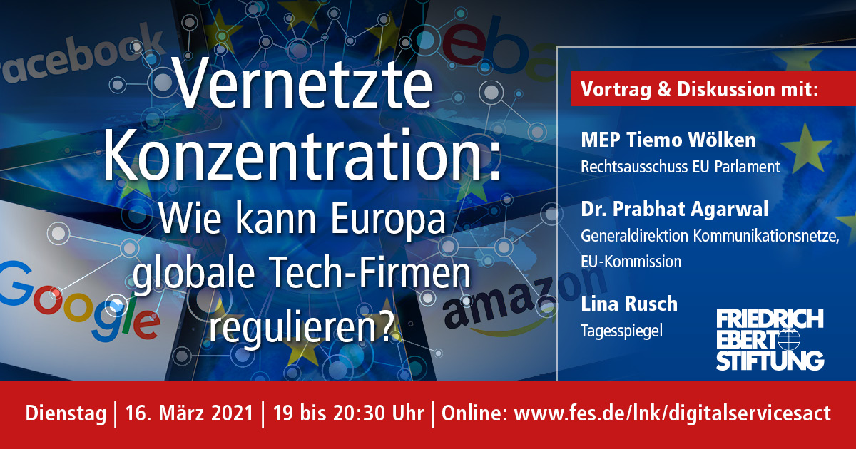 Die Macht der digitalen Tech-Konzerne regulieren und den europäischen digitalen Binnenmarkt vereinheitlichen - nichts Geringeres nimmt sich das Gesetzespaket zu Digitalen Dienstleistungen ("Digital Services Act/DSA") der Europäischen Union vor. Den finalen Gesetzesvorschlag brachte die Europäische Kommission im Dezember 2020 ein - nun geht das Gesetz durch den politischen Prozess durch Parlament und Ministerrat. Nach der Datenschutzgrundverordnung ist dieses Gesetz der nächste Vorstoß, den digitalen Markt politisch zu gestalten: "Ein neues Grundgesetz für Online-Dienste", titelte die Wochenzeitung "Zeit" - und eine überfällige Modernisierung der 20 Jahre alten E-Commerce Richtlinie, die bislang diese Belange regelte. Mit welchen Mitteln, will die Europäische Union weltmarkt-beherrschende, millionenschwere Plattformen und Tech-Konzerne regulieren? Welche (wirtschafts)politischen Ansätze stehen sich dabei gegenüber? Was heißt das für die Verbraucher_innen? Diese Fragen wollen wir mit unseren Gästen und Ihnen diskutieren.