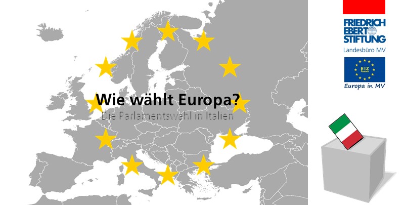 "Wie wählt Europa?" Die Parlamentswahl in ItalienFür die Europäische Union stehen in diesem Jahr einige Veränderungen bevor. Über das gesamte Jahr verteilt wählen die Bürger und Bürgerinnen in den EU Mitgliedstaaten neue Parlamente. Regierungen und Koalitionen müssen gebildet werden, die die Politik des Landes neugestalten, die die Politik des Landes neugestalten und somit auch Auswirkungen auf das europäische Staatenbündnis haben.Eine Einschätzung der Wahl in Italien gibt uns Tobias Mörschel, Leiter des FES Büros in Rom. Durch seine Arbeit vor Ort kann er einen umfassenden und spannenden Einblick über die aktuelle politische Situation geben und die anstehende Wahl einordnen.Lassen Sie uns gemeinsam diskutieren, welche Bedeutung die Wahl für Italien selbst und auch das Verhältnis zu EU haben wird!Eine Kooperation der Friedrich Ebert Stiftung MV und EIZ Rostock e.V..