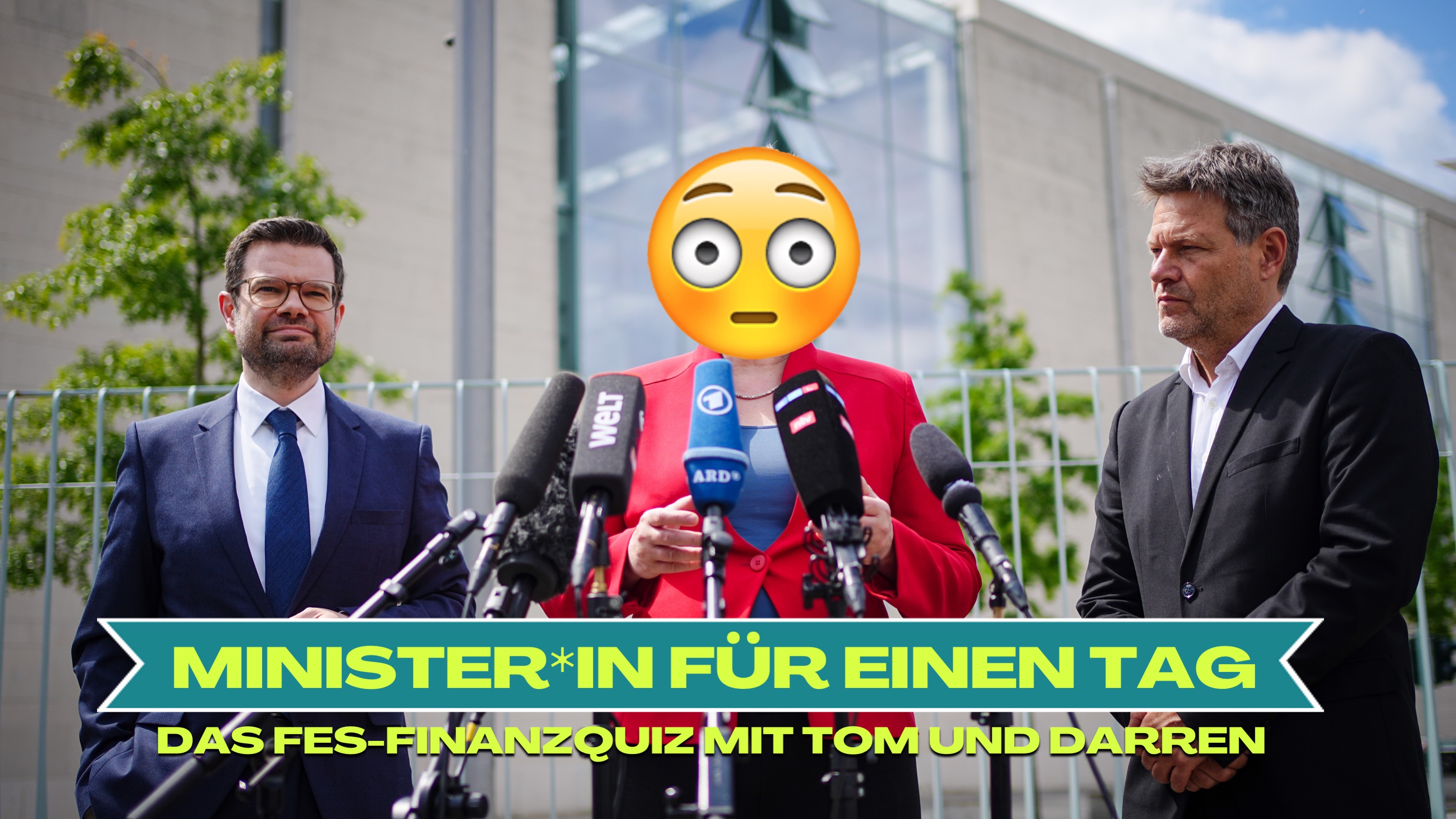 Für einen Tag Finanzminister*in! Im Online-Quiz! Seid dabei!Beim Onlinequiz der FES Mecklenburg-Vorpommern geht es um das liebe Geld. Alles wird teurer – Lebensmittel, Energie, Reisen – und zugleich tut sich die Politik immer noch schwer damit, neue Schulden aufzunehmen, um alle Krisen zu bewältigen. Wie würdest du handeln, wenn du für einen Tag Finanzminister*in wärst? Unsere Quizmaster Tom und Darren liefern Dankanstöße für eine gerechtere Finanzpolitik und stellen Euch die großen und kleineren Fragen rund um Euren Tag als Finanzpolitiker*in. Aber keine Sorge, man kann sich nicht blamieren: Zum Mitspielen braucht ihr weder eineAusbildung zur Steuerfachangestellten noch einen Bachelor in Finanzwissenschaften, sondern nur ein gutes Allgemeinwissen sowie ein bisschen Glück und Schwarmintelligenz! Gespielt wird nämlich nicht allein, sondern in Teams von 2-6 Personen. (Wer allein kommt, den schicken wir gerne in ein nettes und hoffentlich kompetentes Team, wenn gewünscht).Es spielen mit: Tilo Gundlack, Vorsitzender des Finanzausschusses des Landtages MV und Sprecher der SPD-Landtagsfraktion für Haushalts- und Finanzpolitik, sowie Dirk Hengstenberg, Referatseiter im Finanzministerium MV. Mit ihnen sprechen wir zwischen den Quizrunden über ihre Ideen für eine gerechte Finanzpolitik, über die Haushaltslage in Mecklenburg-Vorpommern und darüber, wie sie selbst mit Geld umgehen. Alle sind herzlich eingeladen, sich auch an den Gesprächen zwischen den Quizrunden zu beteiligen.Meldet euch bis zum 07. November am besten gleich als Team hier an: schwerin@fes.de oder unter: www.fes.de/lnk/finanzquiz-mvEs genügt, wenn einer von euch das Team anmeldet. Bis zu 6 Teilnehmende können in einem Team spielen. Gebt bei der Anmeldung gerne auch eure Team-Größe sowie euren Teamnamen an. (Insofern ihr schon einen habt) Natürlich könnt ihr euch auch einzeln anmelden. Wenn ihr wollt, teilen wir euch dann kurzfristig einem Team zu.Wichtige Infos zum Quiz: Die Quiz-Plattform funktioniert nur auf PC und Laptop – Tablet/Smartphone funktionieren nicht. Bitte verwendet den Browser Google Chrome. Zugang und Infos erhaltet ihr einige Tage vor der Veranstaltung. Bis dahin bleibt gespannt!Unsere Quizmaster sind Darren Grundorf und Tom Zimmermann(www.tomunddarren.de)8. Nov 2022 / 19.30 bis ca. 21.00 Uhr – Online