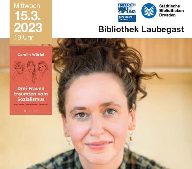 Veranstaltungsort: Bibliothek Laubegast, Österreicher Straße 61, 01279 DresdenChrista Wolf, Brigitte Reimann, Maxie Wander - waren sie Träumerinnen oder Macherinnen, diese drei Frauen, die zu Ikonen der DDR-Literatur wurden? In ihrem atmosphärischen Porträt zeigt Carolin Würfel drei Schriftstellerinnen, die im Temperament unterschiedlicher kaum sein könnten und die doch eines eint: die Begeisterung für das Versprechen des Sozialismus, die Bereitschaft, den Traum vom neuen Menschen in ihrem Alltag, ihrer Arbeit und ihren Beziehungen umzusetzen. Mit welchem Selbstbewusstsein diese Frauen in den 1950er- und 1960er-Jahren ihre Ziele verfolgen, sich dabei als Freundinnen stützen – wie ihre Träume aber auch platzen, davon erzählt Carolin Würfel inspiriert und mitreißend und lässt ein Stück Zeitgeschichte lebendig werden.Wir freuen uns auf: